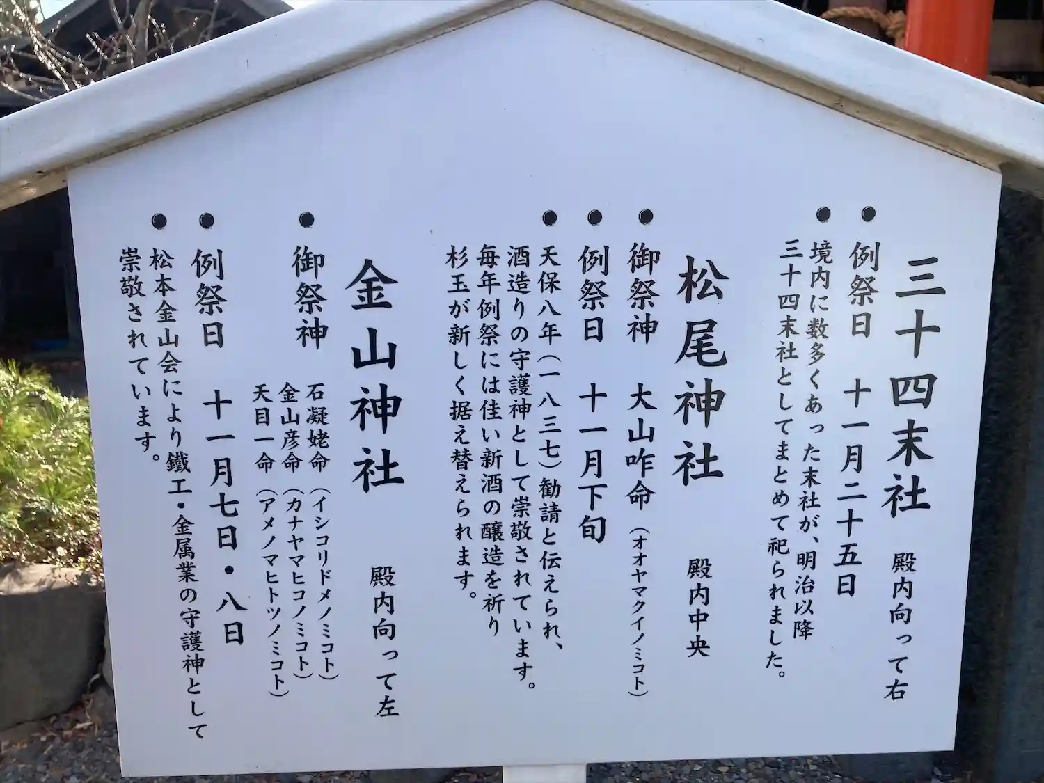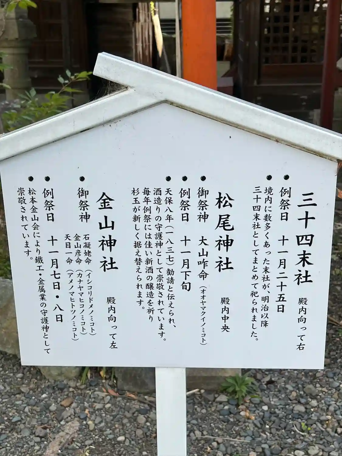 境内社 松尾神社・金山神社他三十四末社が合祀されています