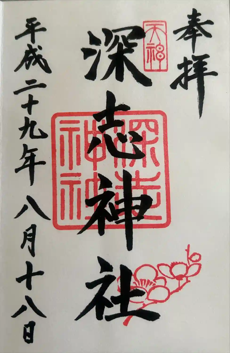 御朱印の写真はありませんが、社務所にて御朱印頂けます。