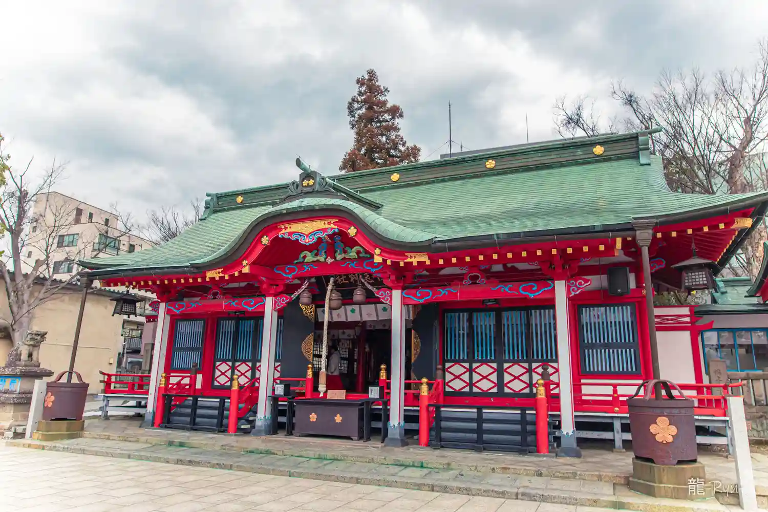 鮮やかな朱色の建物が印象的です