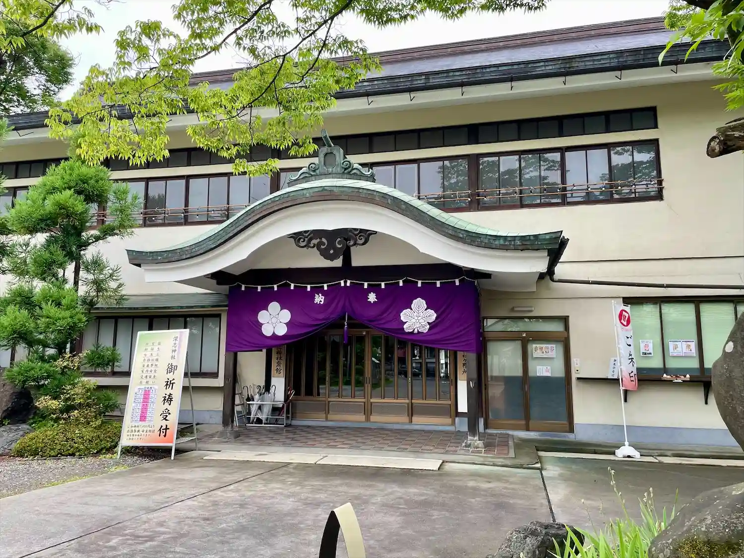 社務所の前と神楽殿に御朱印撮影場所が設けられていました。