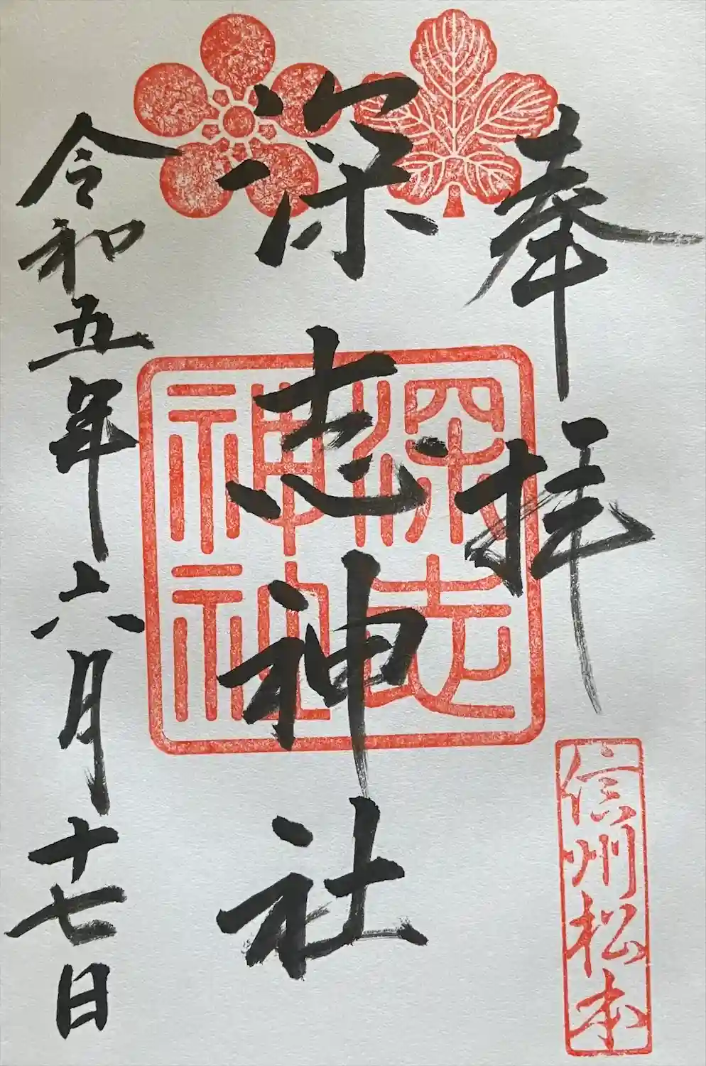 深志神社は松本駅の東、歩いても行ける街中に鎮座します。朝9時を過ぎたばかりでしたが御朱印を頂けまし…