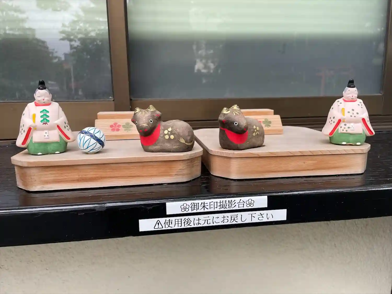 御朱印撮影用の台が数種類あります。