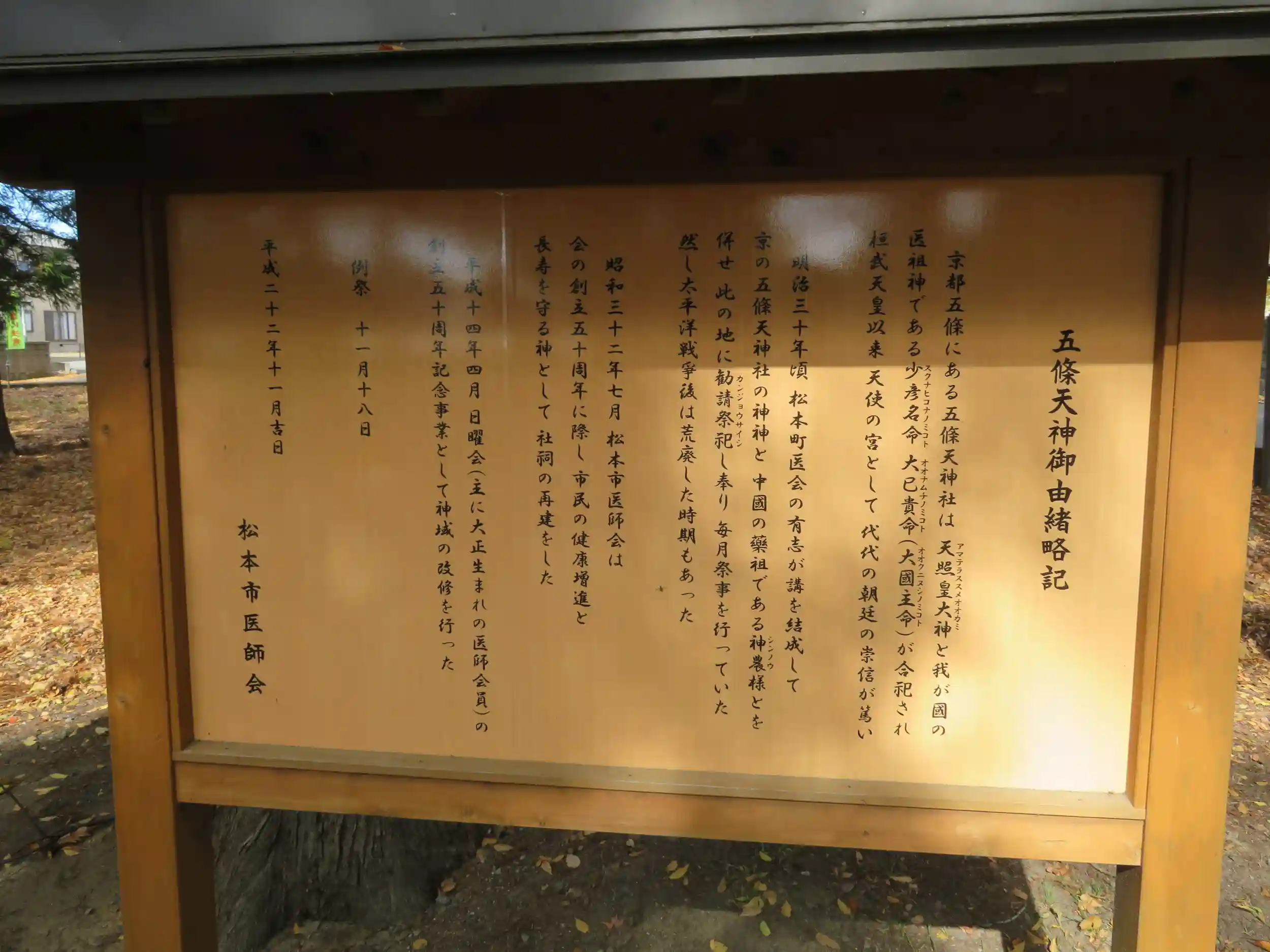 五條天神社 由緒書き