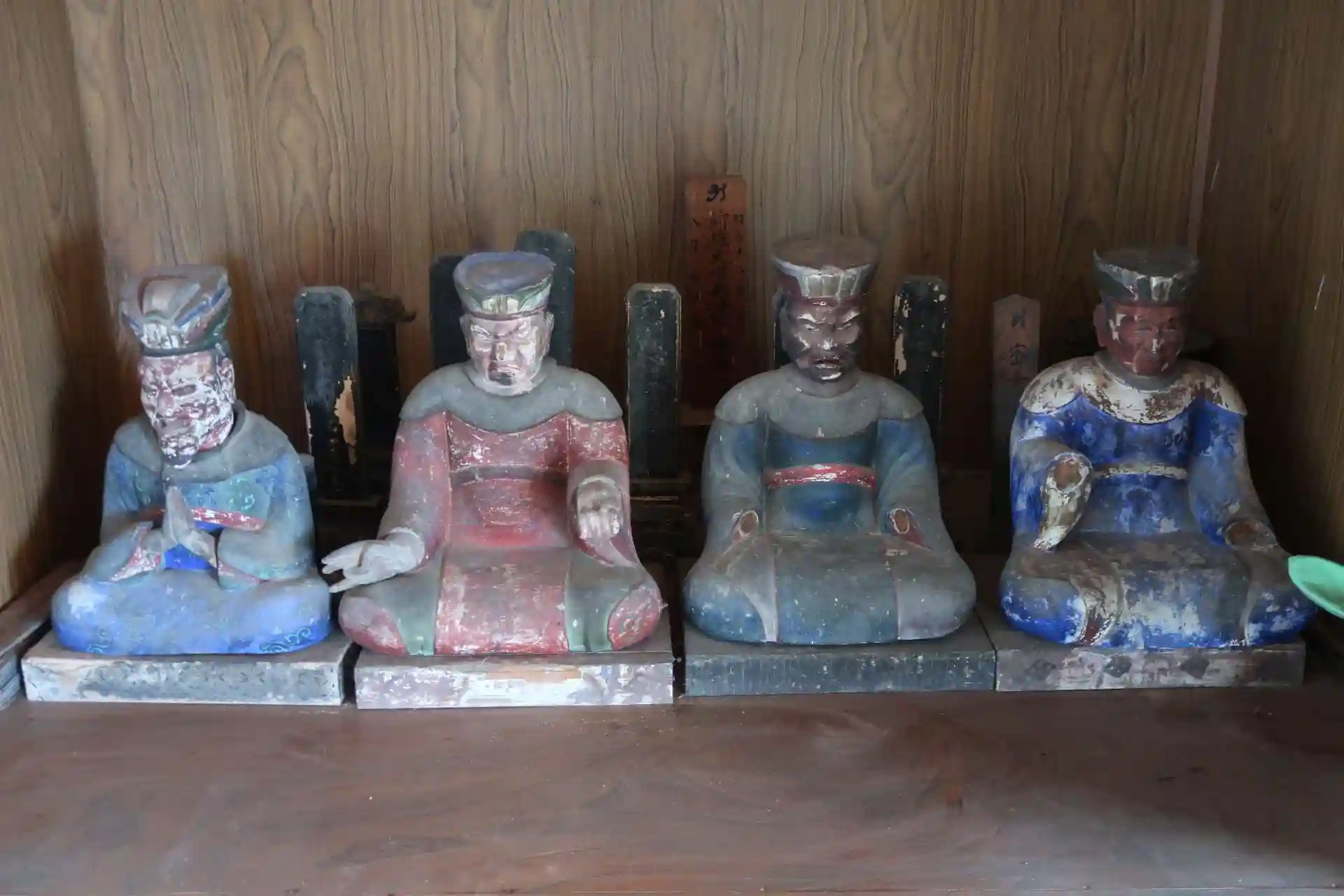 山門などは無く、鉄筋コンクリート造りの建物(収蔵庫)があるのみ。墓参りに来た近所の方が中に入られていて帰られる所でした。総代さんに挨拶すると上がってくれと。お賽銭を入れて、手を合わせてから入らせて頂きました。中は六畳くらいでしょうか。中央にど~んと千手観音立像と小像の脇侍の不動明王立像と毘沙門天立像。右脇間には十王像(数躯)、地蔵菩薩像、弘法大師像、左脇間にも十王像(数躯)が安置してありました。
