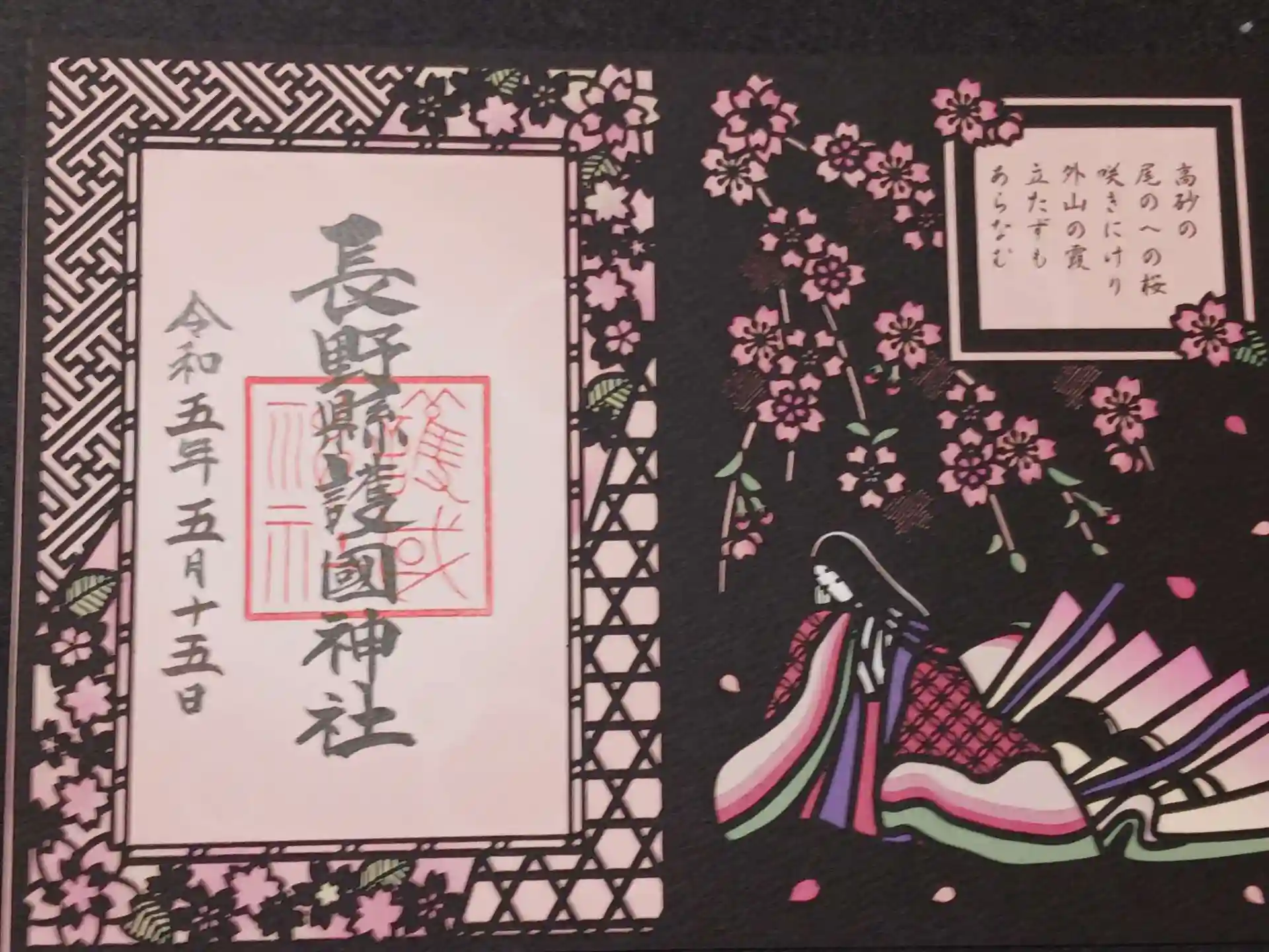 切り絵の御朱印、本当は秋バージョンを頂きたかったんですけど頂いたのは春バージョンでした。春も頂きたかったものだからまあ良いか。今度は秋バージョン確実に頂こう。