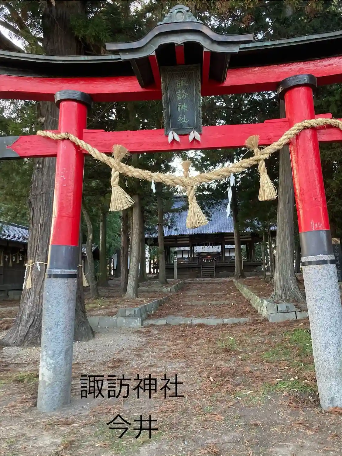 現在も境内地には歴史的経緯のなかで整えられた建造物群がのこり、旧来の歴史的景観を伝えている。なかでも、諏訪社と八幡社と八坂社と神楽殿はその中心的な建造物であり、下今井諏訪神社の歴史のみならず、当地域の歴史を物語る重要な遺産である。