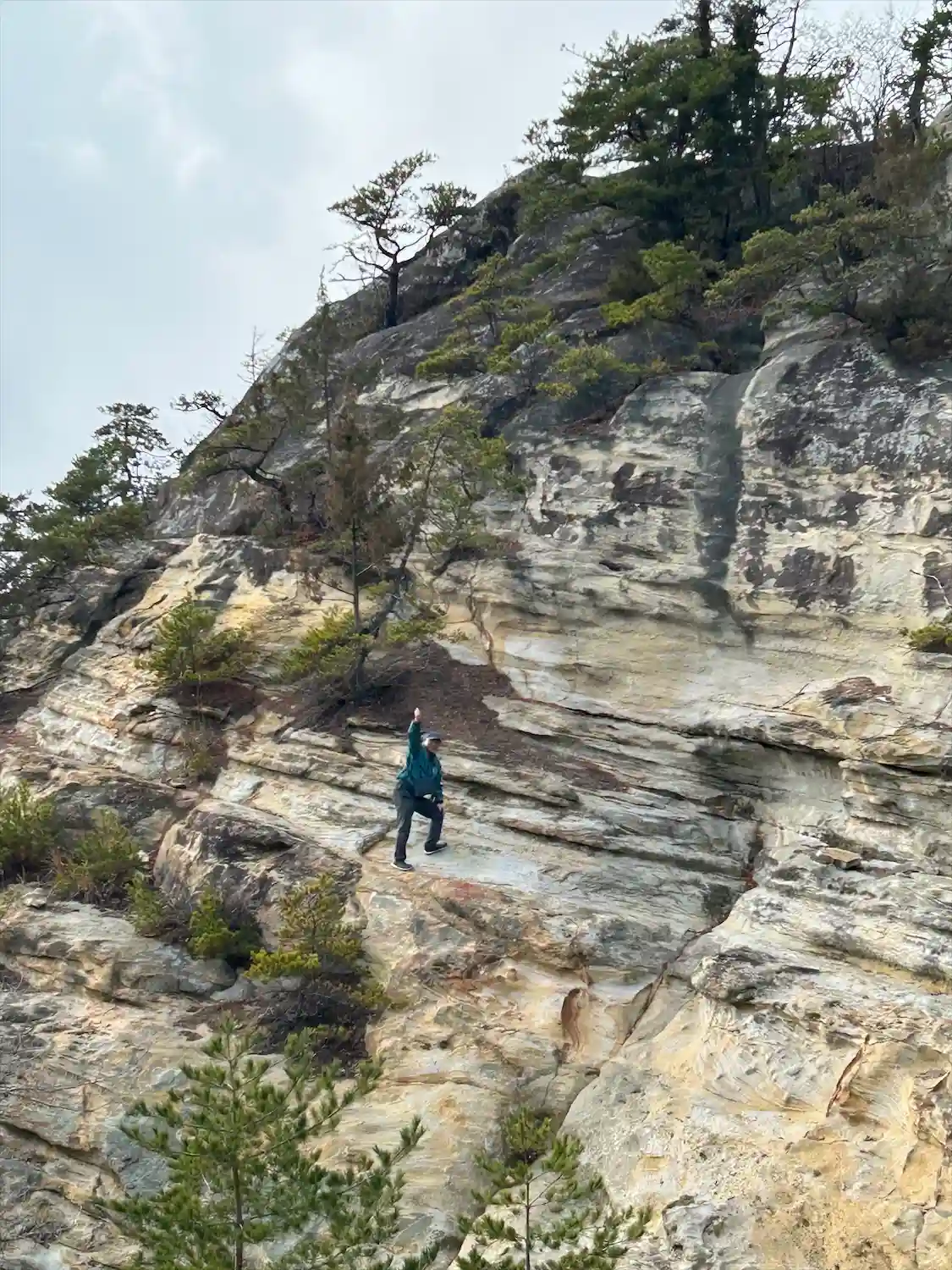 周辺には大きな岩🪨がたくさんあります。160センチの大黒天を探しながら鎖付きの小道を行くと、とても大きな岩山四賀キャニオンがありました。岩肌が茶、黄、白ととても綺麗でしたが崖なので注意⚠️が必要です。