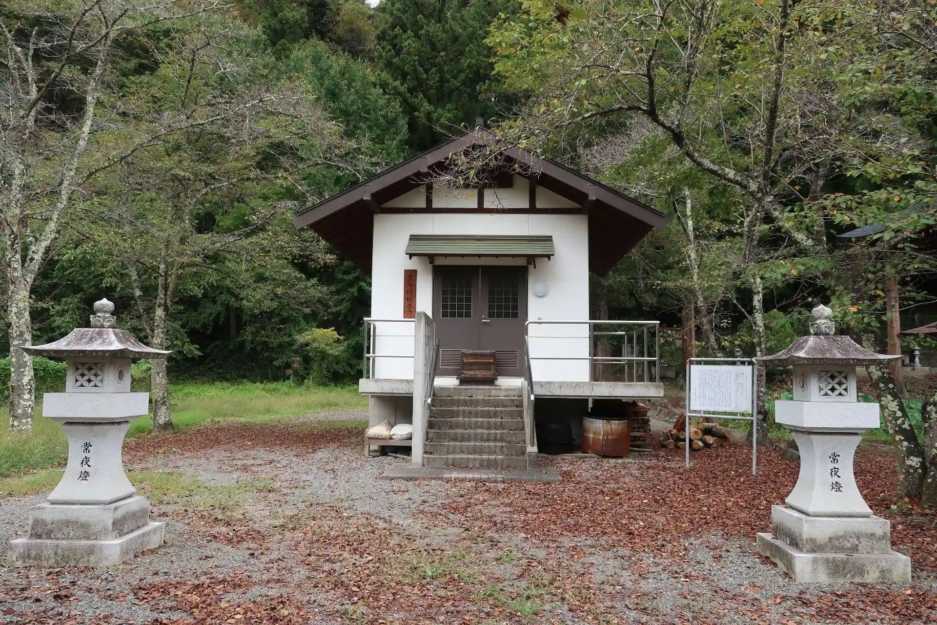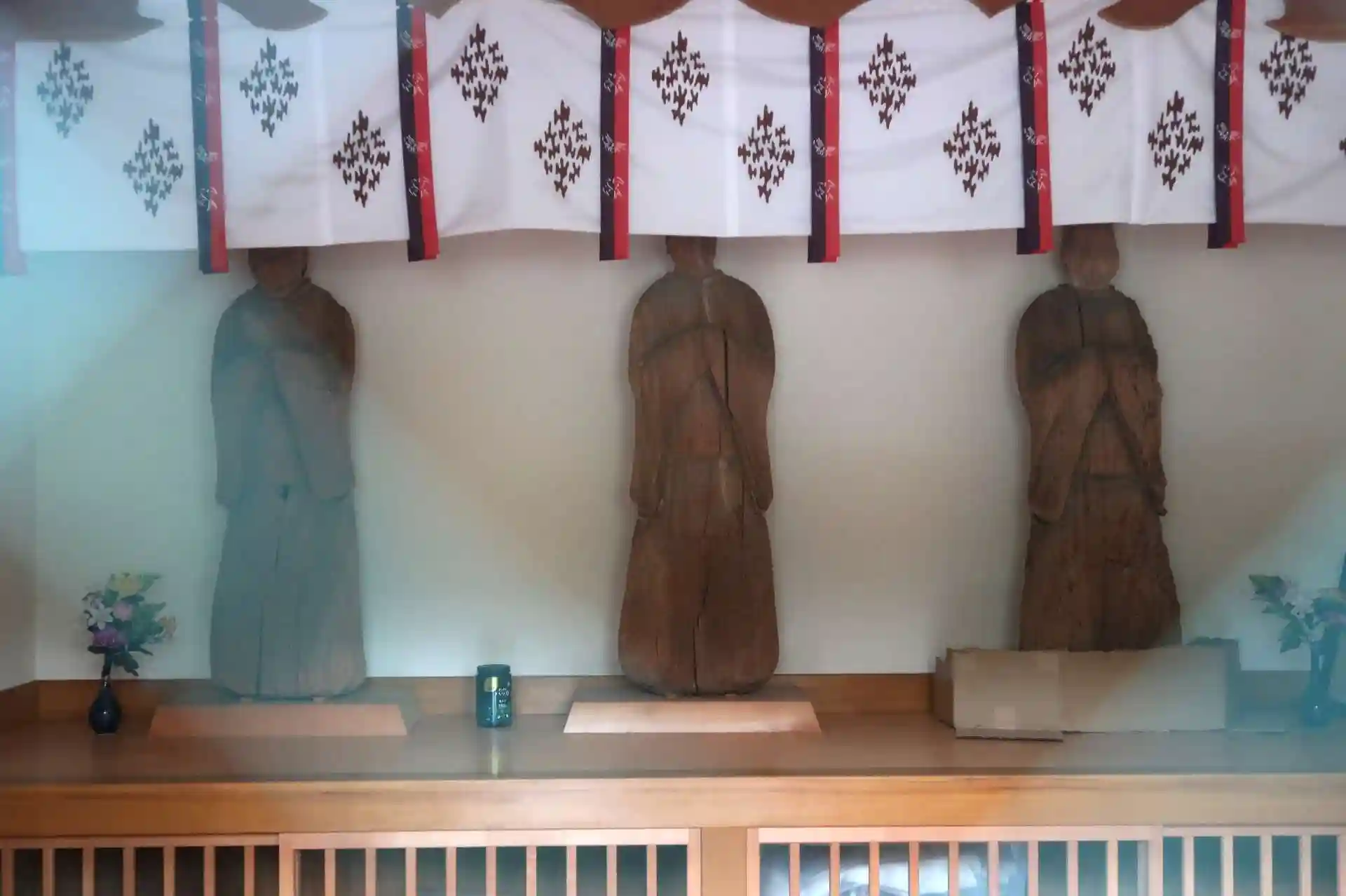 本堂左側に収蔵庫らしき建物があります。これが大日堂かな思いましたが三所権現堂でした。施錠されていましたがガラス窓のため中は見えます。県宝の三所権現(神像)三体が安置されていました。中に入らせて頂いて近くからじっくり観たいですね。