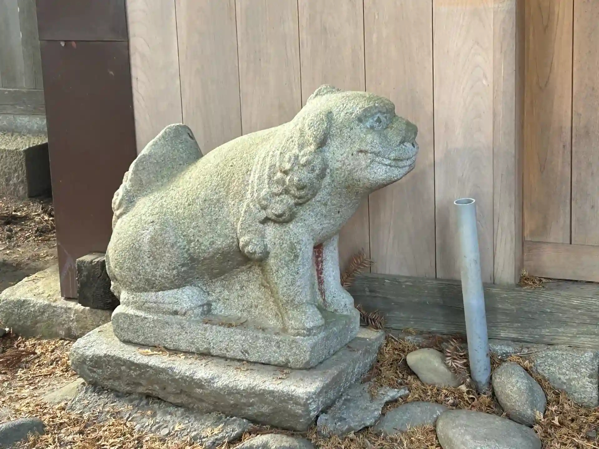 拝殿と本殿は2019年新しく建て変えられましたが、日方磐と伊勢宮拝殿前に歴史を感じる可愛い狛犬さんがおられます。😍