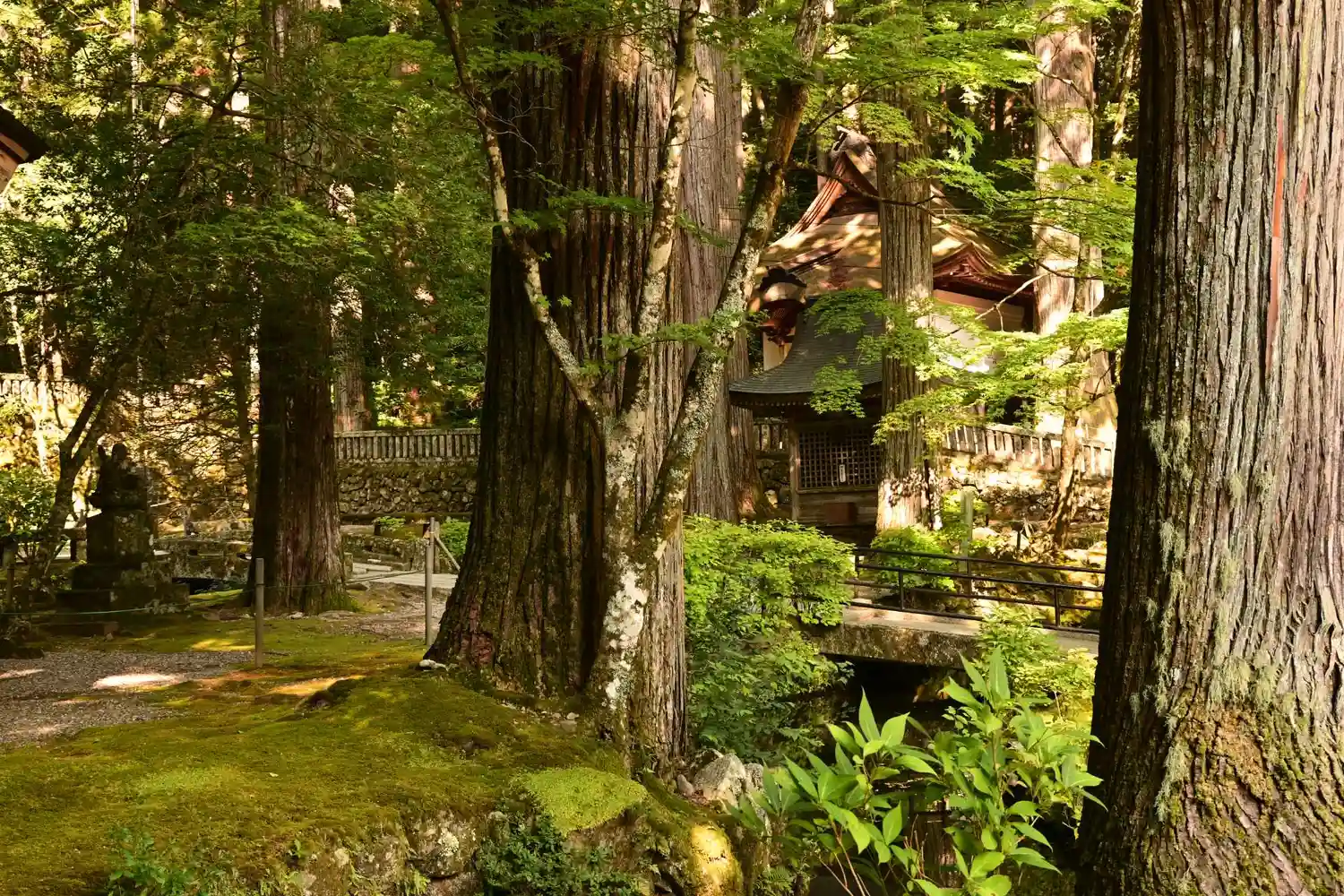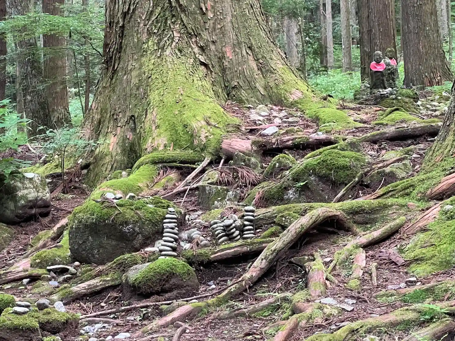 木々がうっそうとしており、苔がいっぱいです。