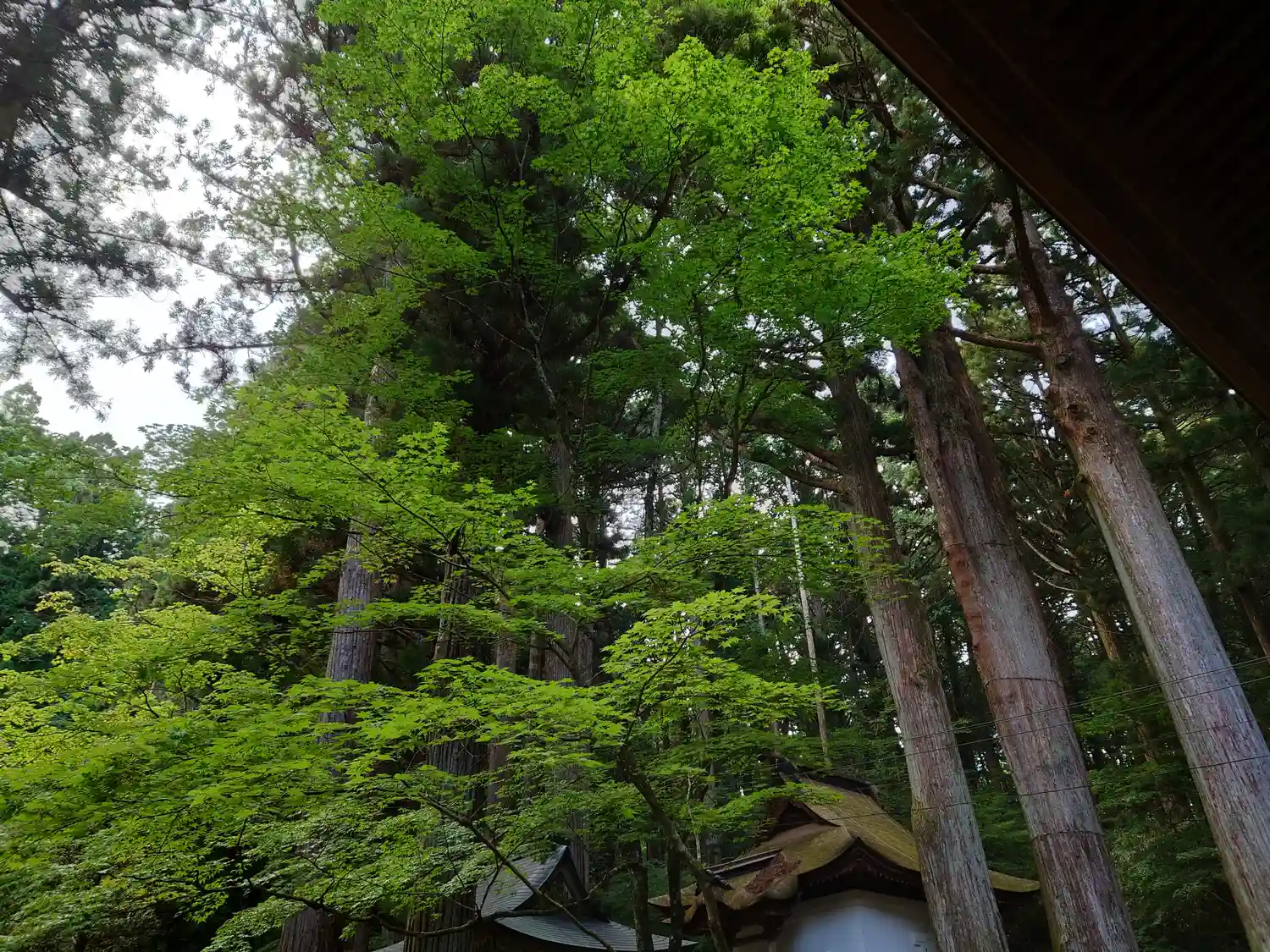 優しい翠の光が境内を染める