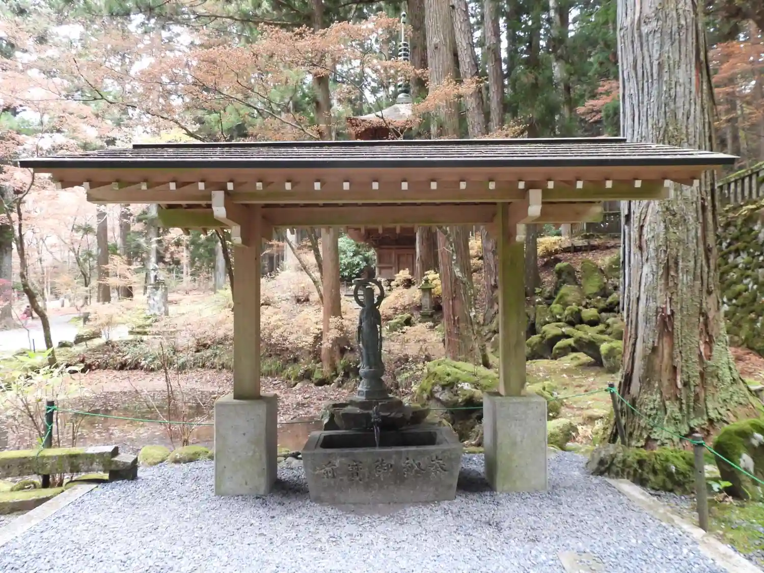 広い境内は杉の木や池が美しい。紅葉はまだだったが、紅…