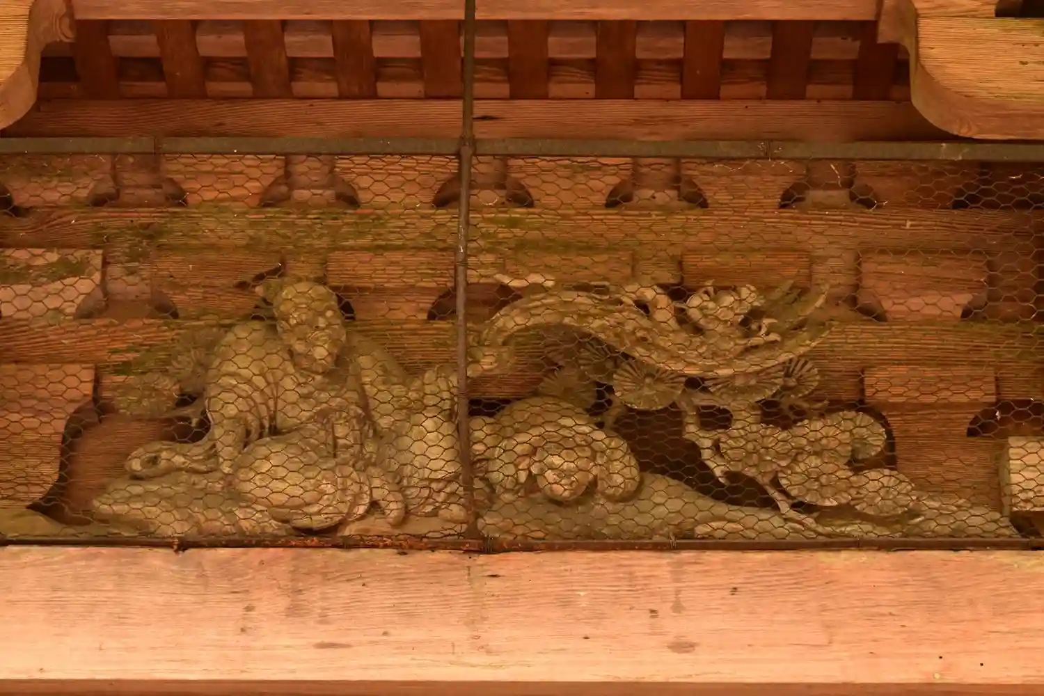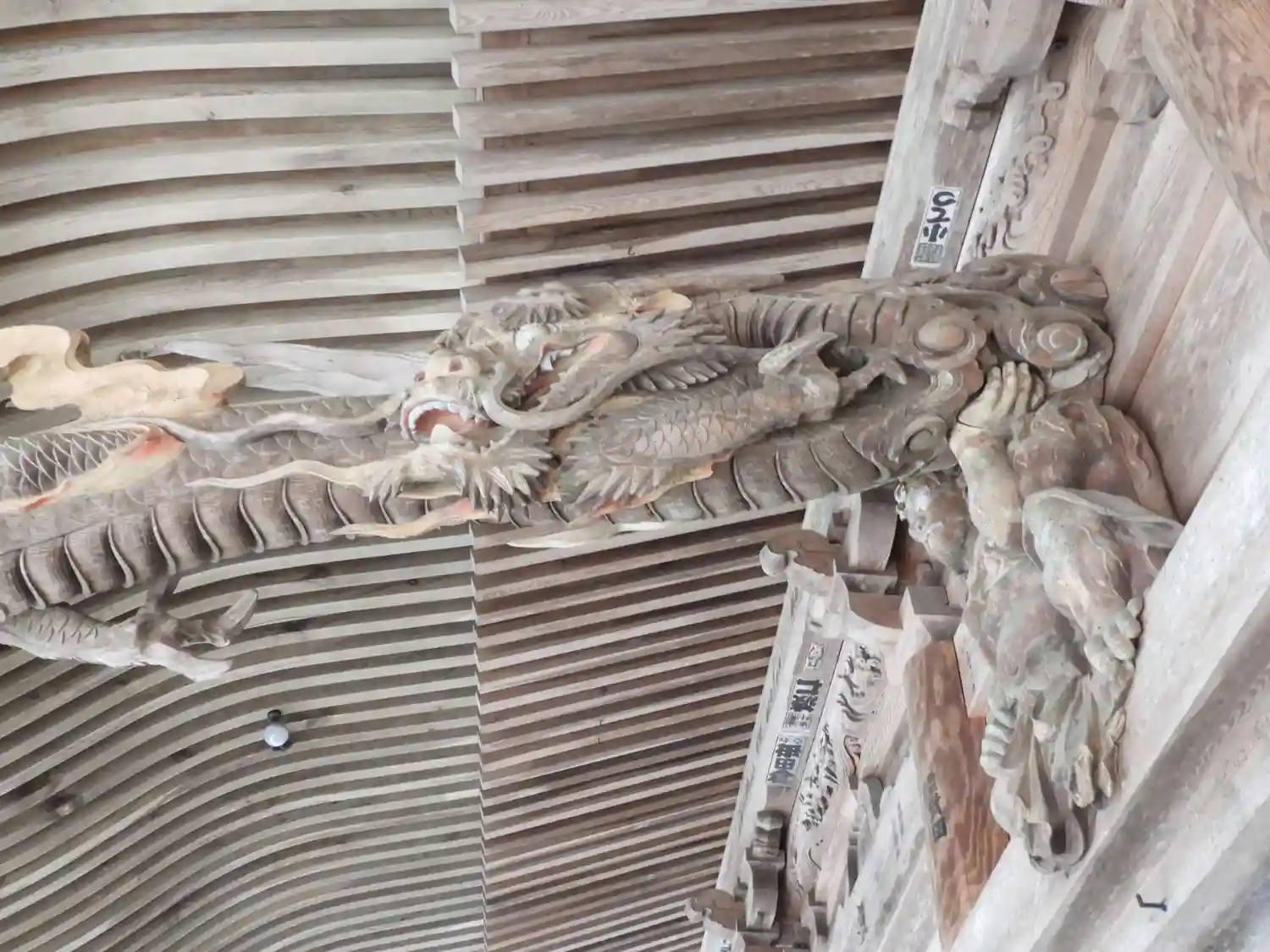 本堂梁彫刻:龍の姿が見事です。
