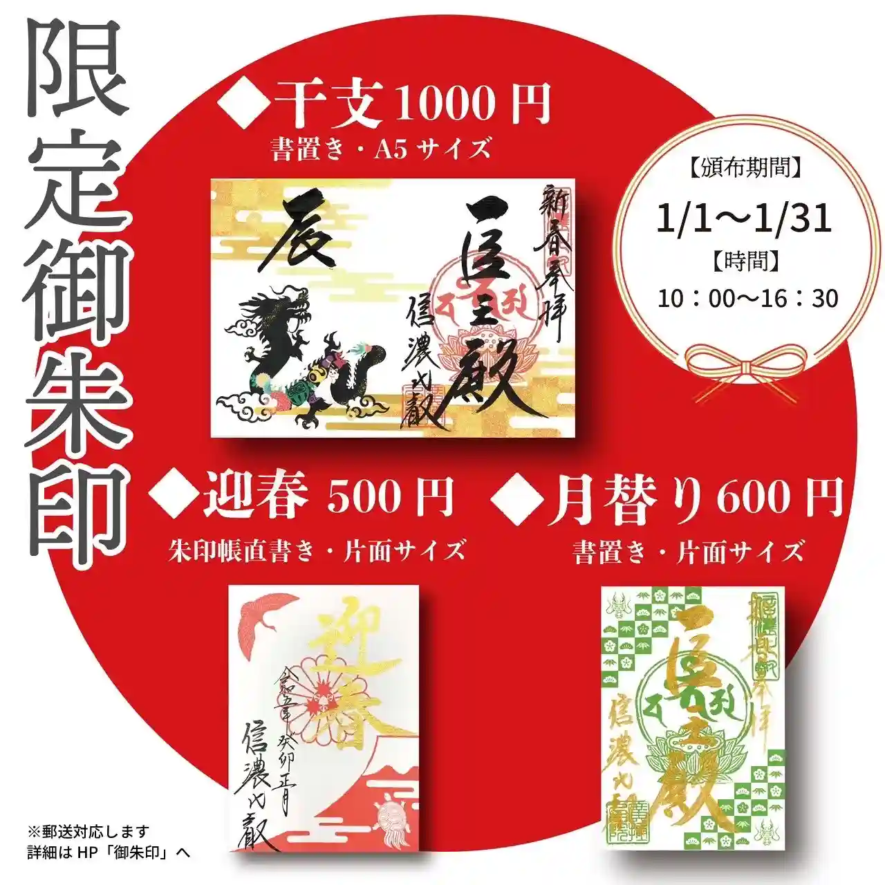 ※迎春のみ直書き可、その他は書き置きのみ