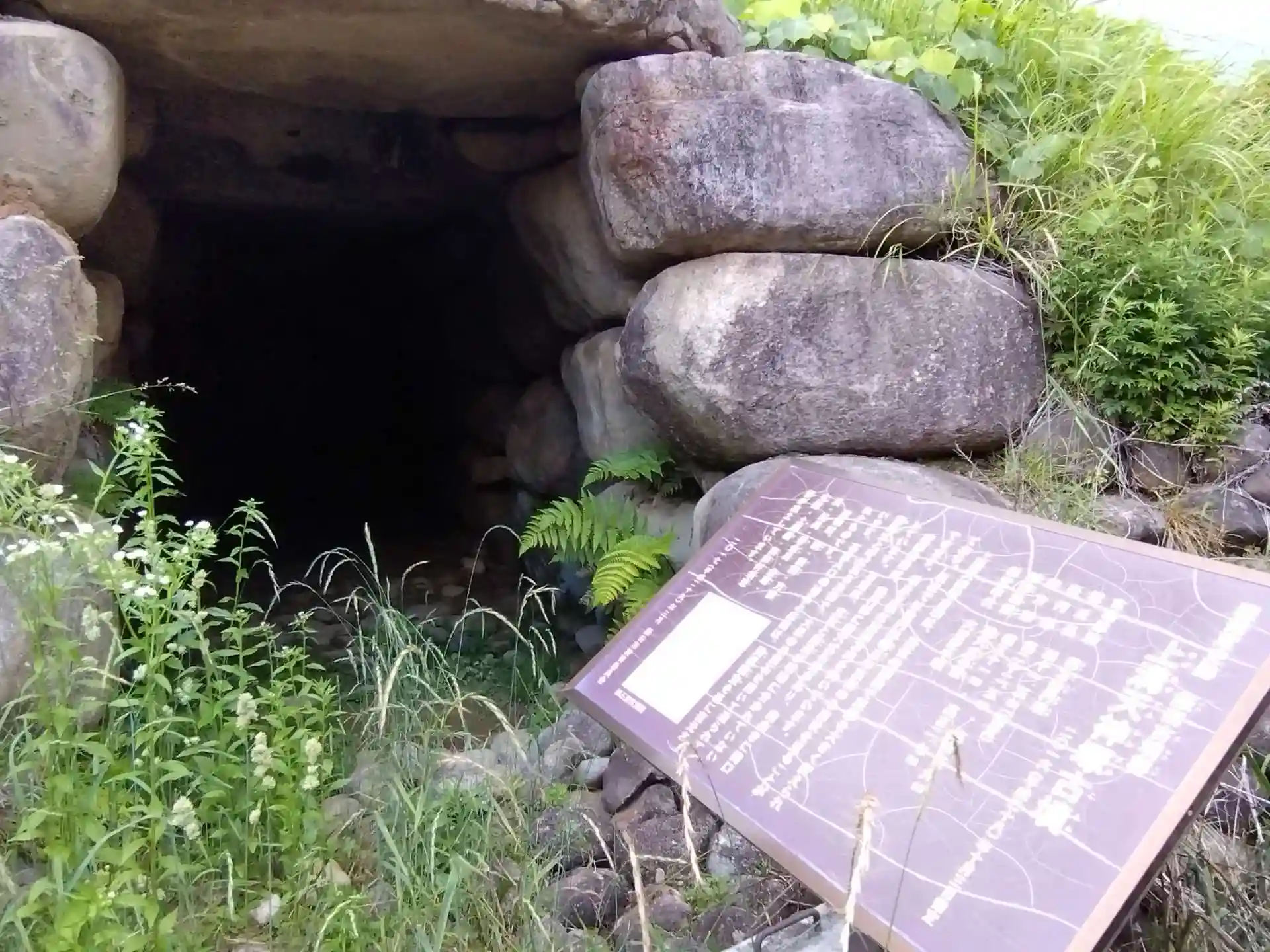 上溝天神塚古墳の上にあり、後ろに回ると石室の開口部があります。ひとつの建物で左は阿弥陀如来のお堂です。