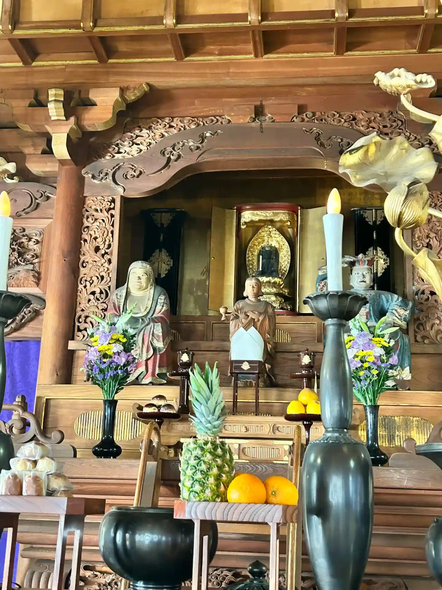 本堂内天井には絢爛豪華な彫刻もあり、圧巻されました。