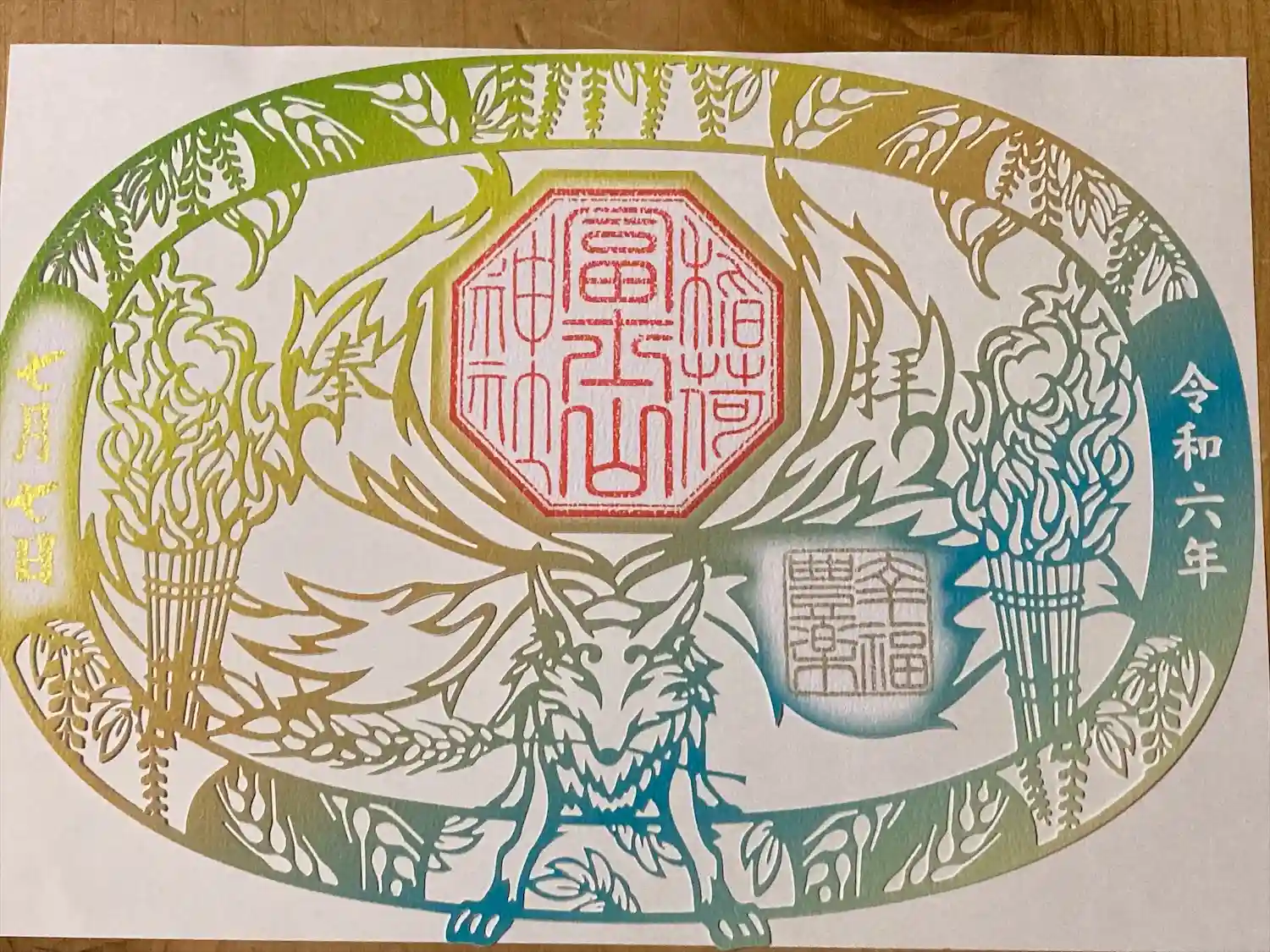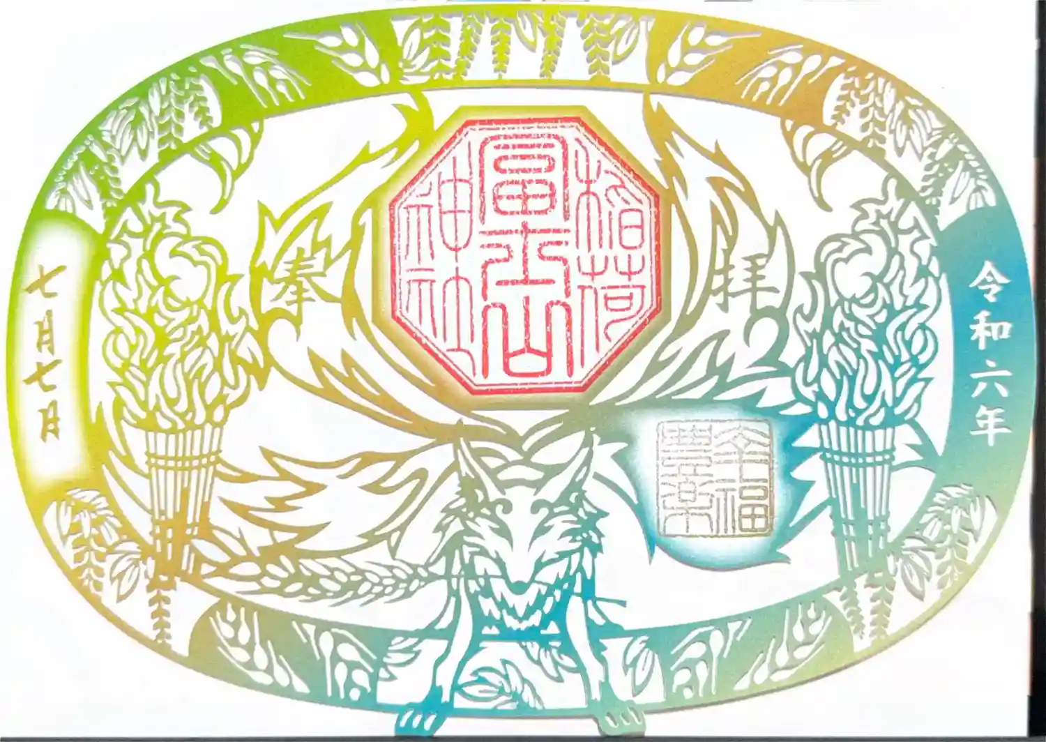 飯田市の夏祭りの始まりを告げる7月7日、8日のむぎわらまつり限定の切り絵御朱印。