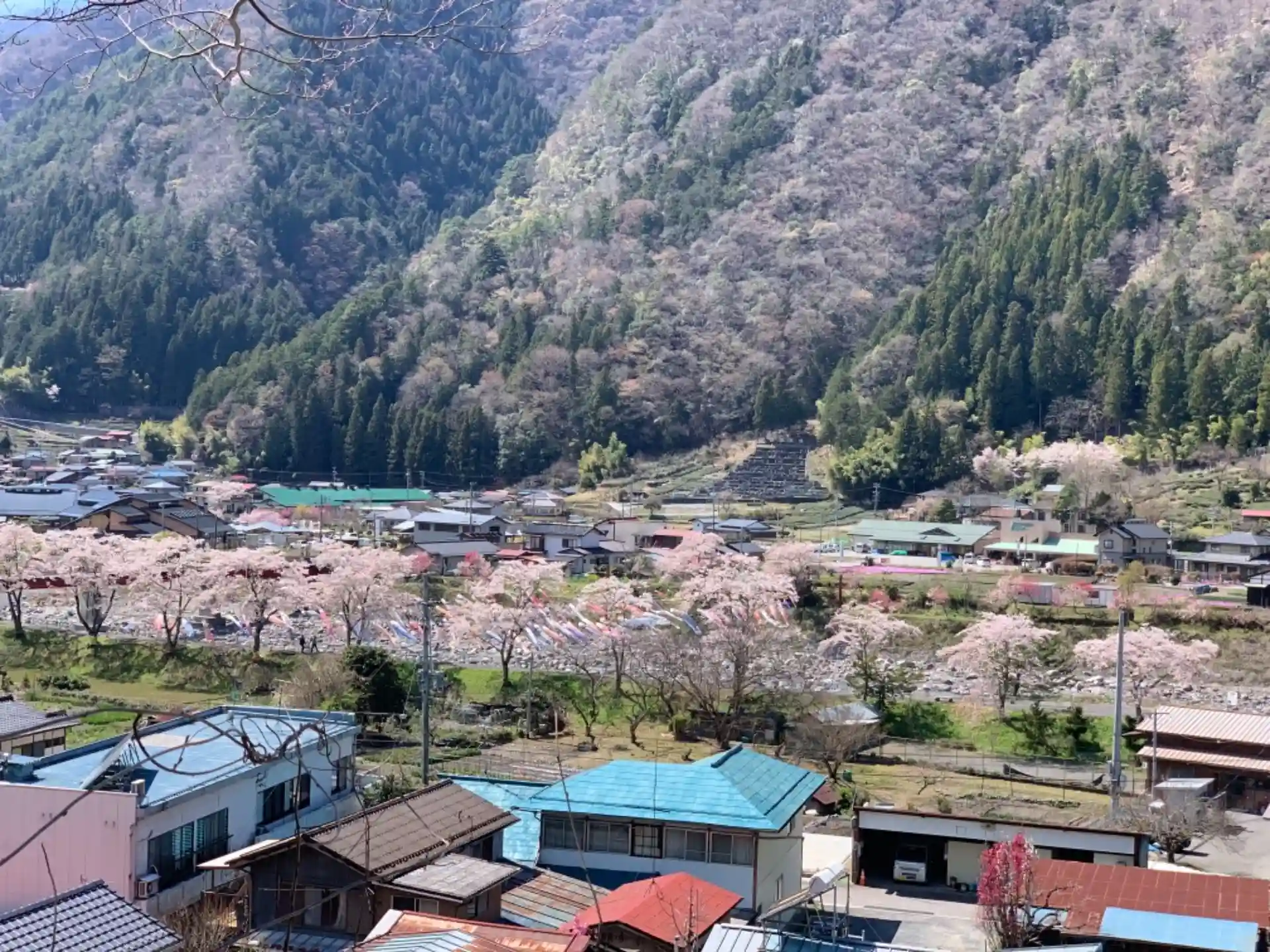 遠山郷は桜が満開。ご住職は気さくな感じ。