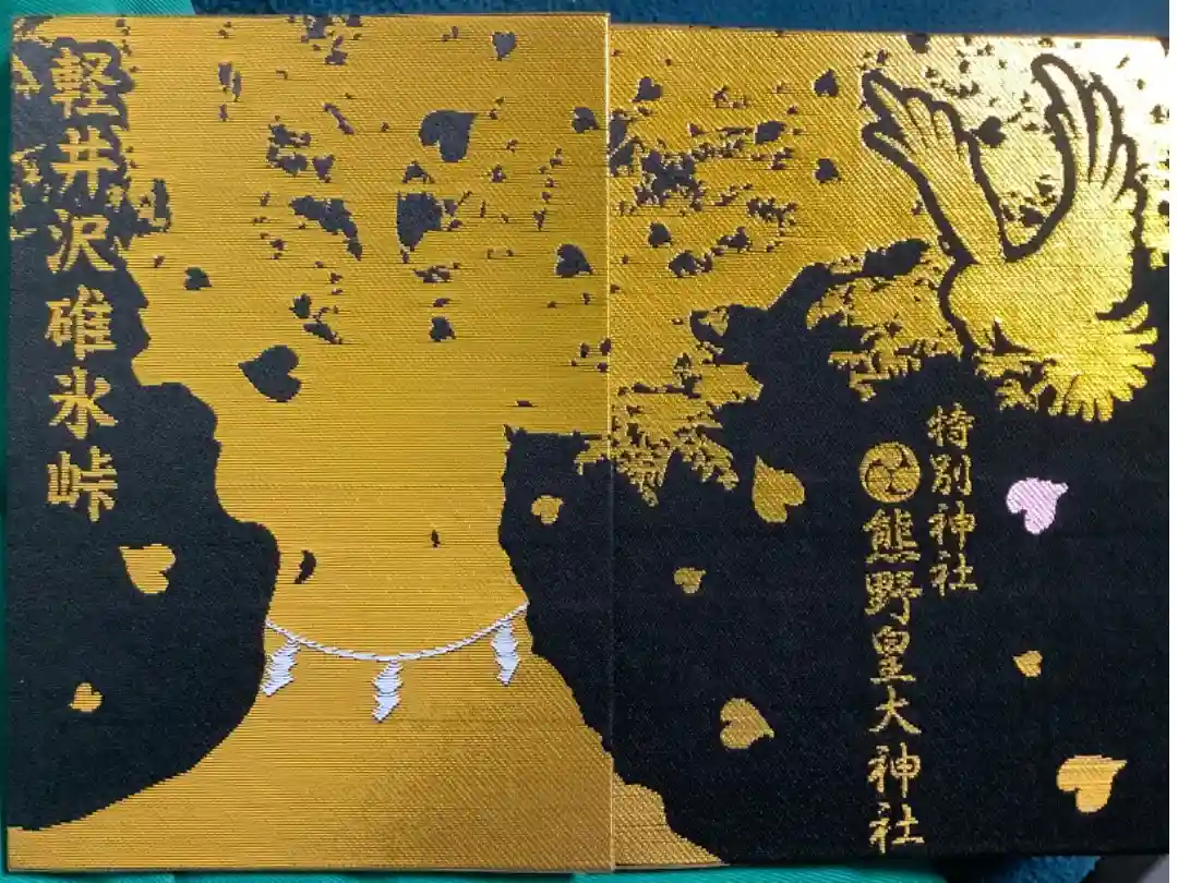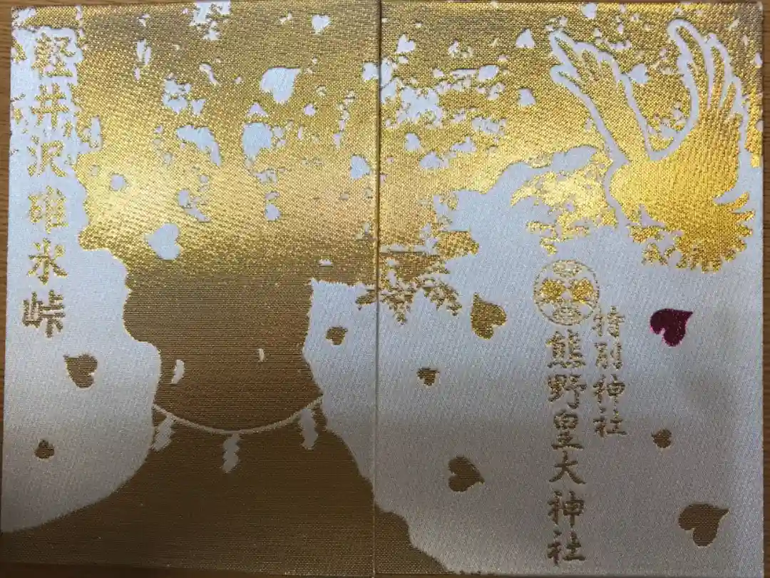 ところが、たちまち濃霧が発生して何も見えなくなり、道に迷われてしまった。そこに一羽の八咫の烏が現れ、紀の国熊野山の椰の葉をくわえて来て、日本武尊の御前に落とし前導するように飛んで行くので八咫烏について行くと、無事に碓氷峠に到着した。日本武尊は、熊野神霊の加護に感謝し、この碓氷の嶺に熊野大神を勧請したのが当社の起源。景行天皇四十年十月のことであるという。