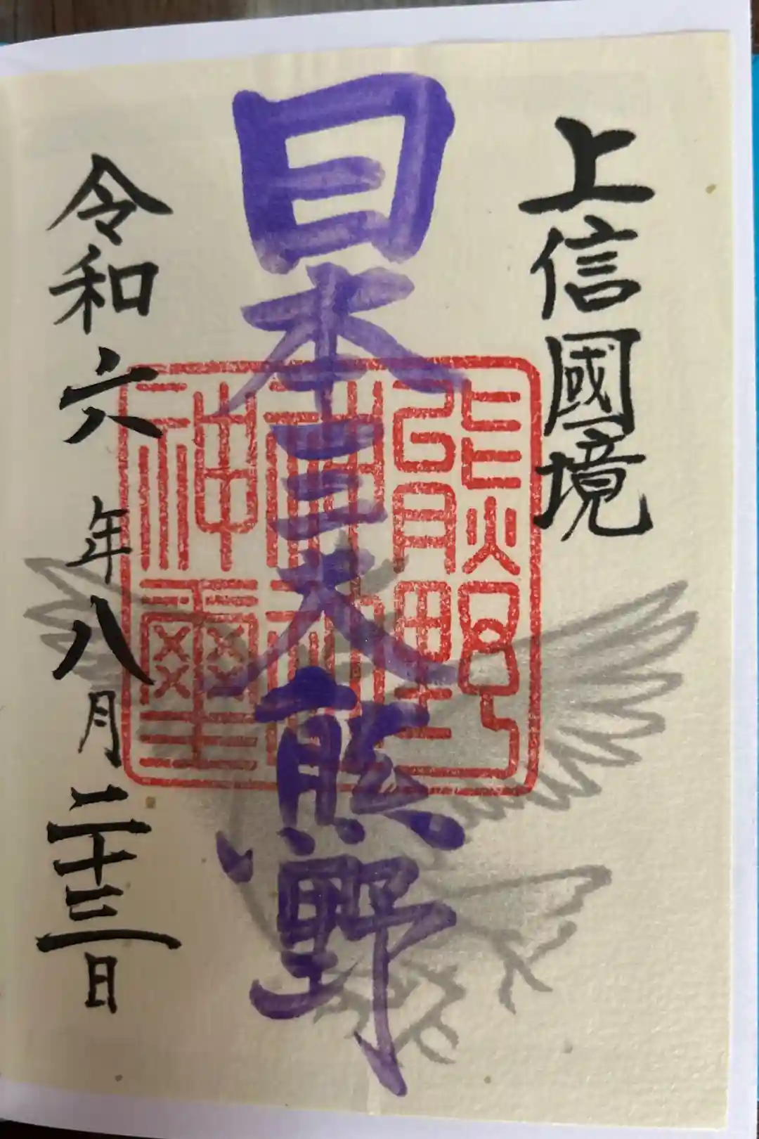 ○八咫烏の社紋、熊野皇大神社の社印の御朱印
