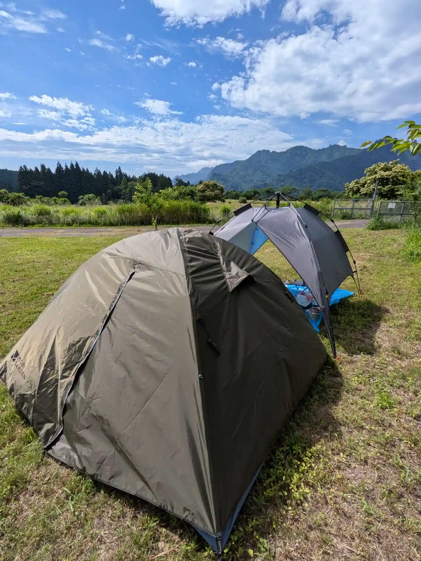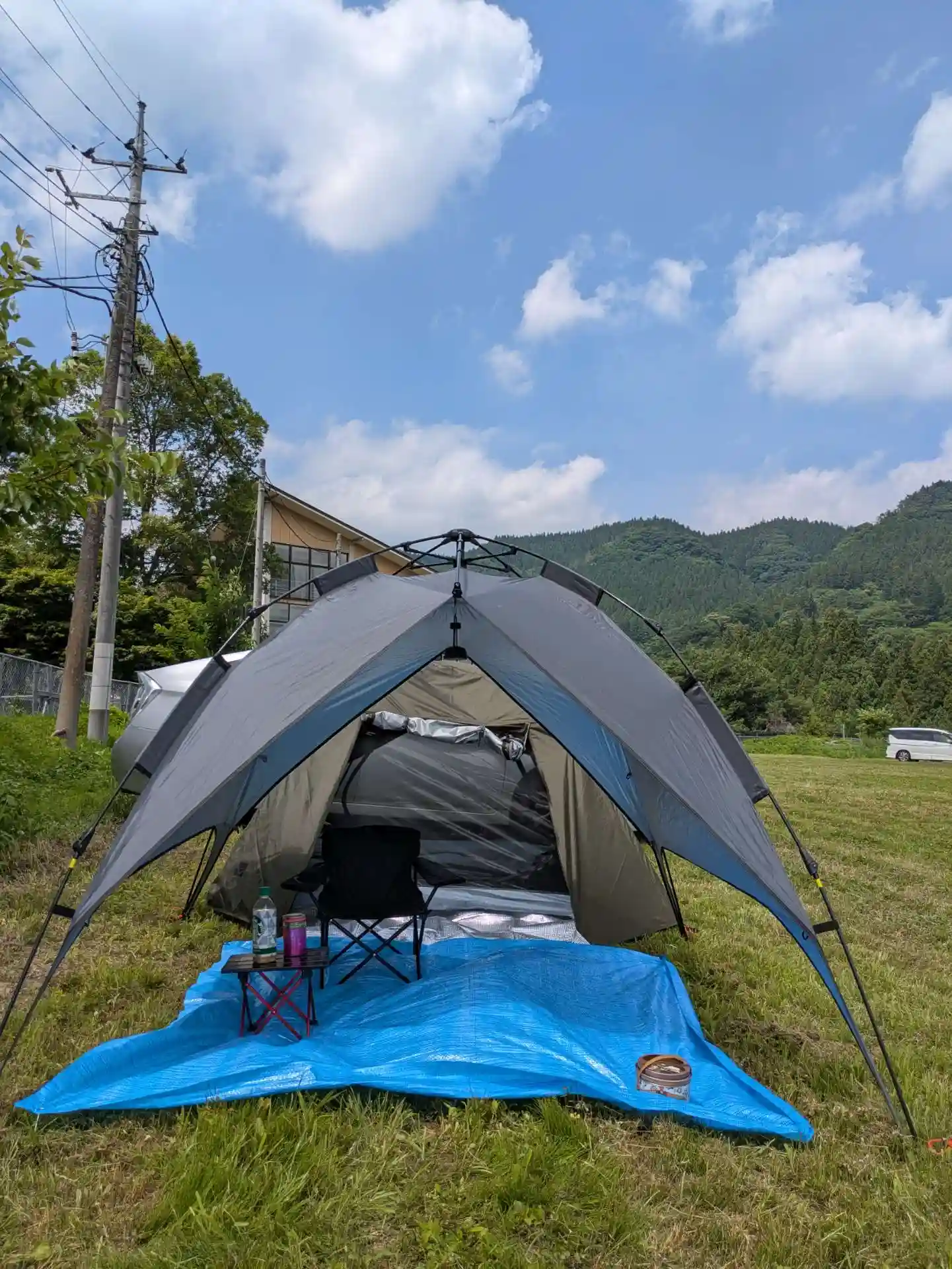私のサイト、今回のテントは車横付けなんで“モビガーデン”3人用(約3kg)でアマゾンで約1万円。前のワンタッチ式タープモドキは約5千円(Yahooショッピングで購入、無名メーカーは雨漏りします)設営はメチャ早いです。テントは“ワンテグリス”“モビガーデン”“ネイチャーハイク”等で十分です(雨漏り防止の為ある程度のメーカー物が良いです)。