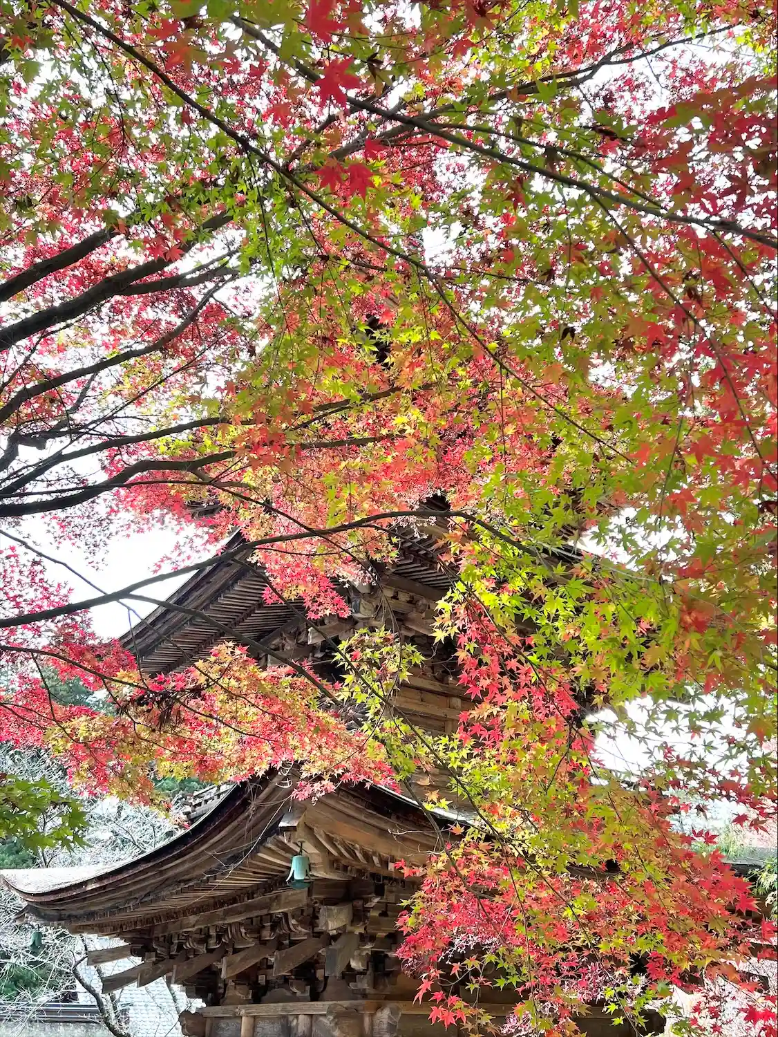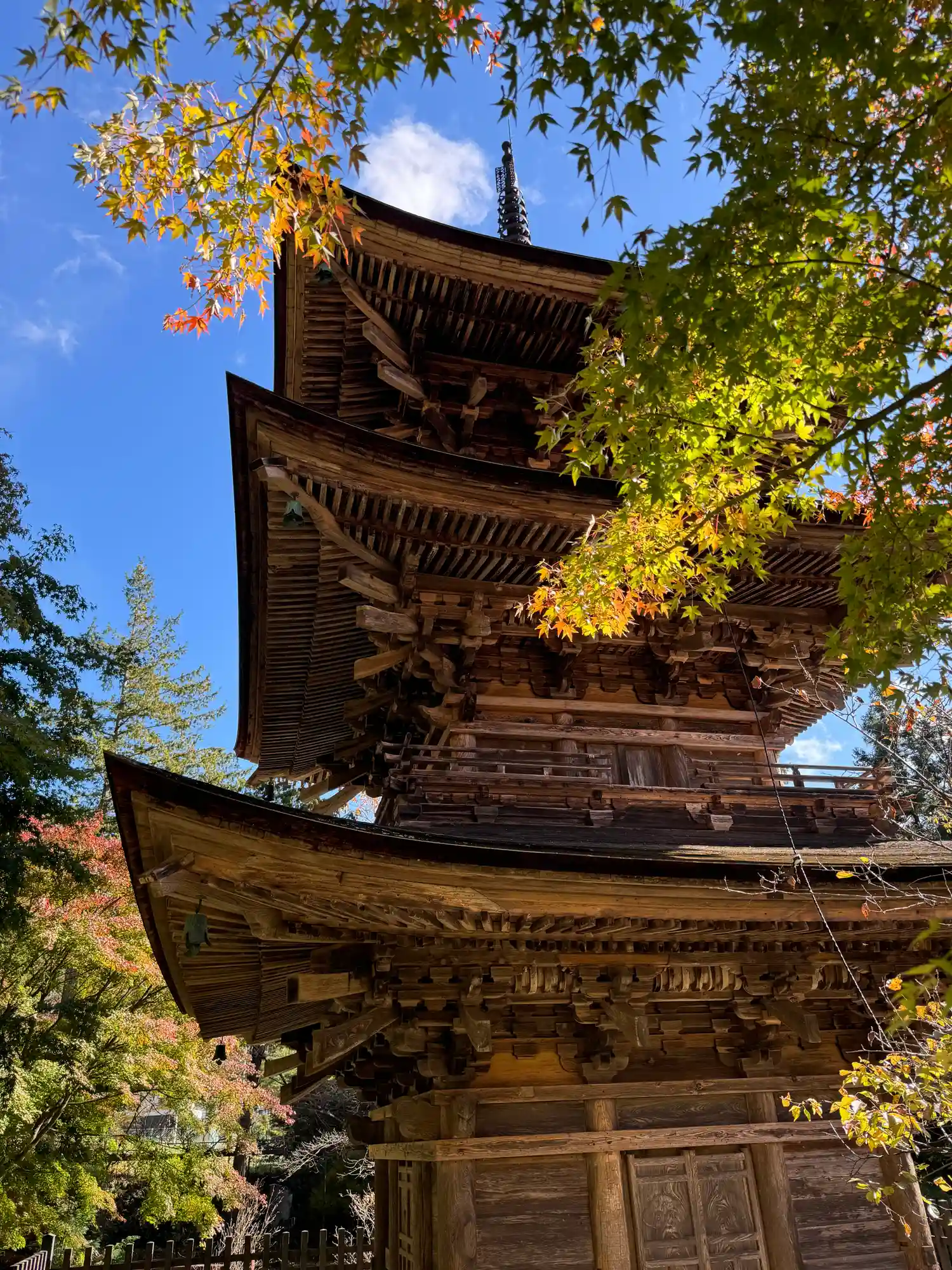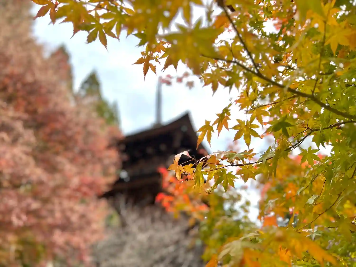 三重塔とモミジ
