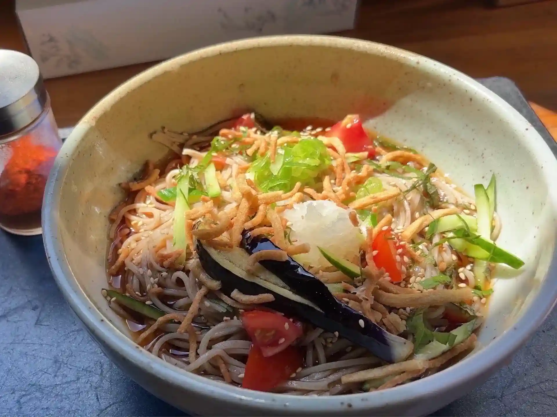 信州野菜をフンダンにつかった冷やし蕎麦っす。