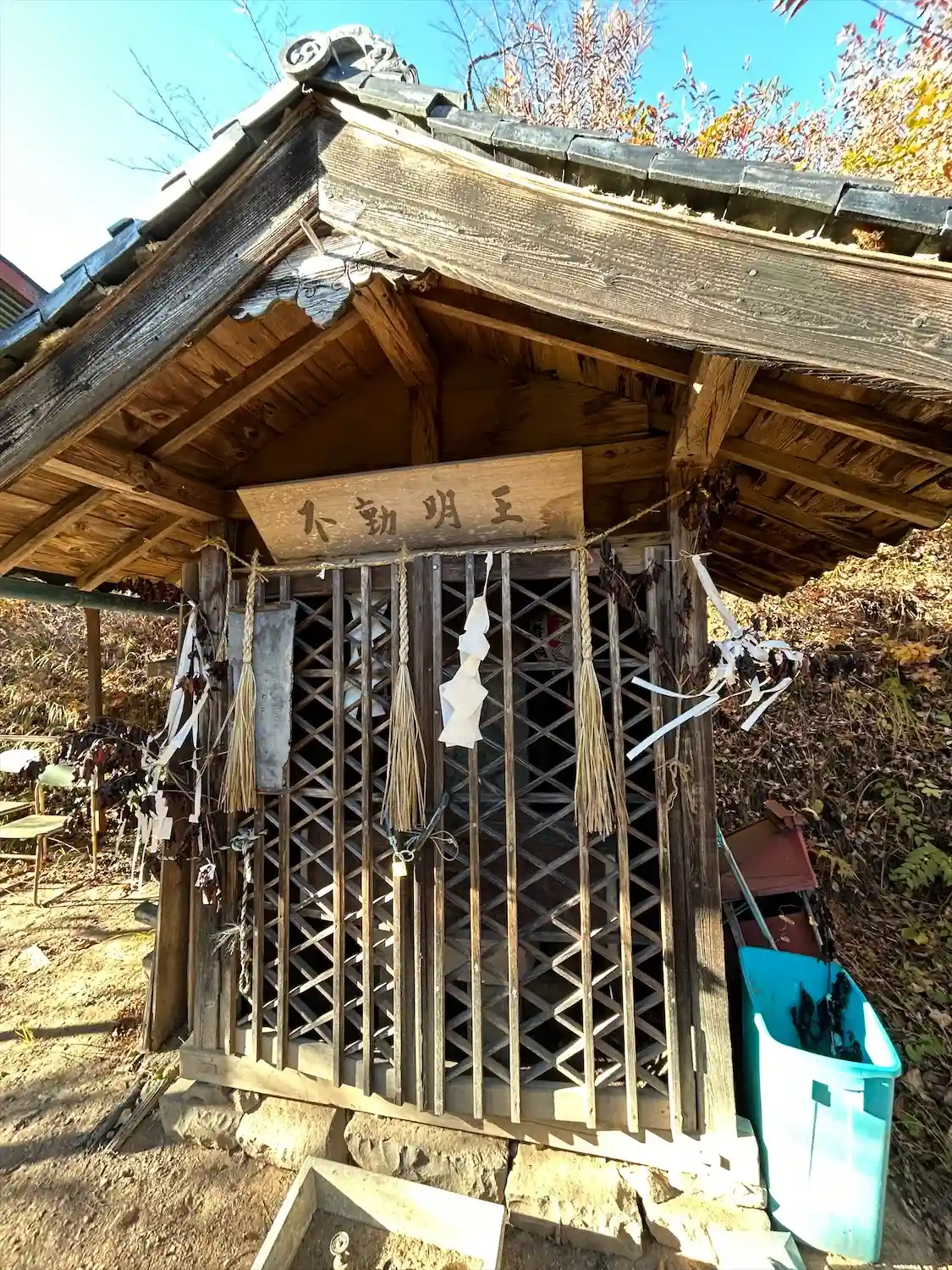 善光寺街道沿いに鎮座する小さな横山不動尊は、松本市大口沢から旧四賀村に入ってすぐの山を少し上がった所にあります。