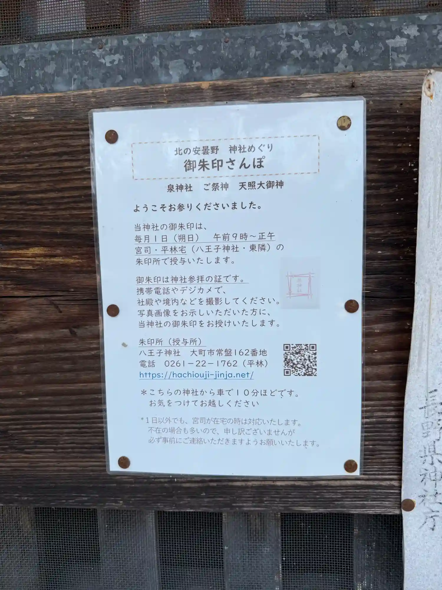 御朱印は参拝後写真を撮り、八王子神社にて拝受可能。拝受可能日は限定なので事前に確認をお勧めします。