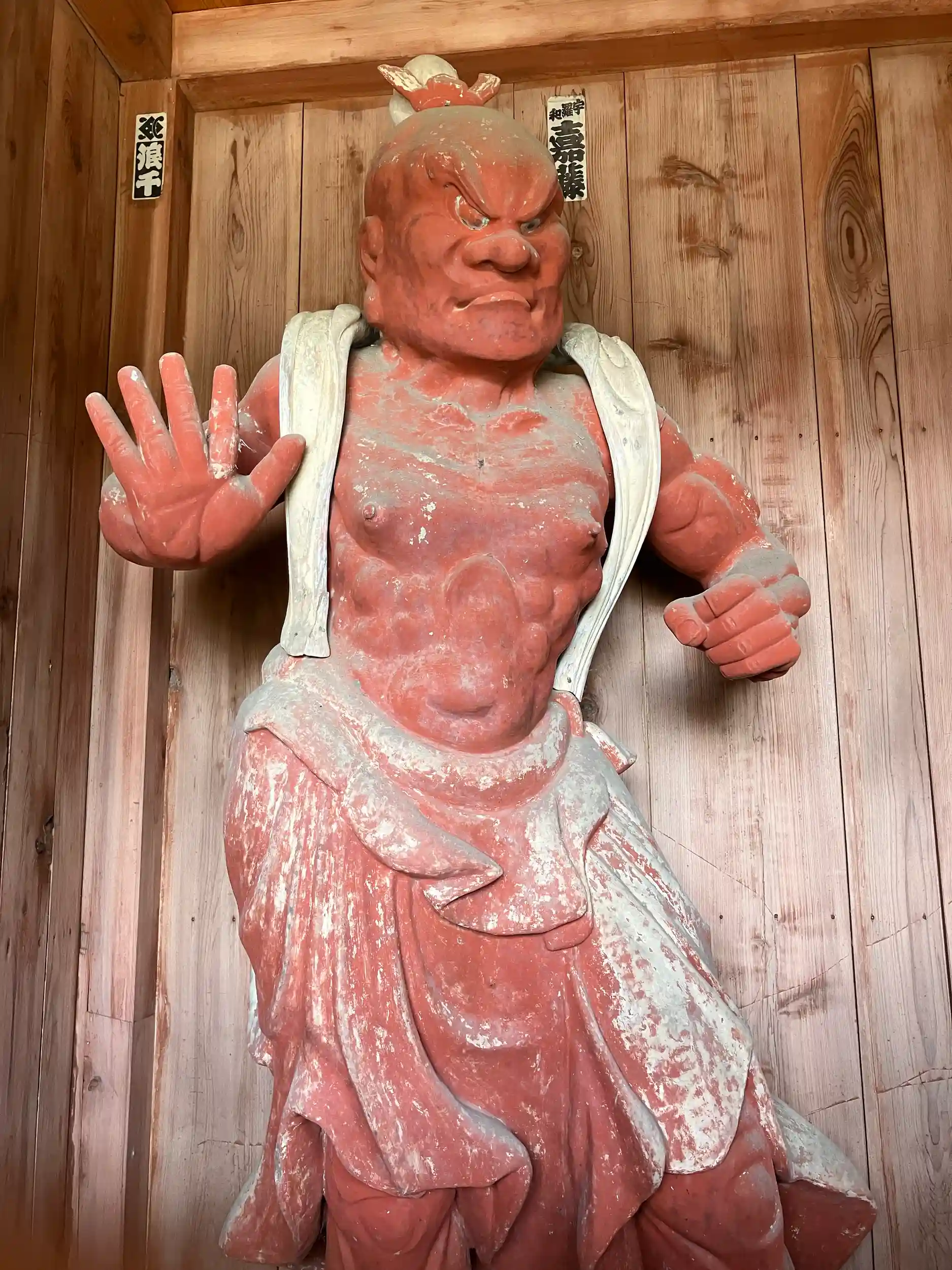 元禄年間(1688年~1704年)老朽化で倒壊寸前となったため、木喰山居上人の勧進により1698年に再建されている。