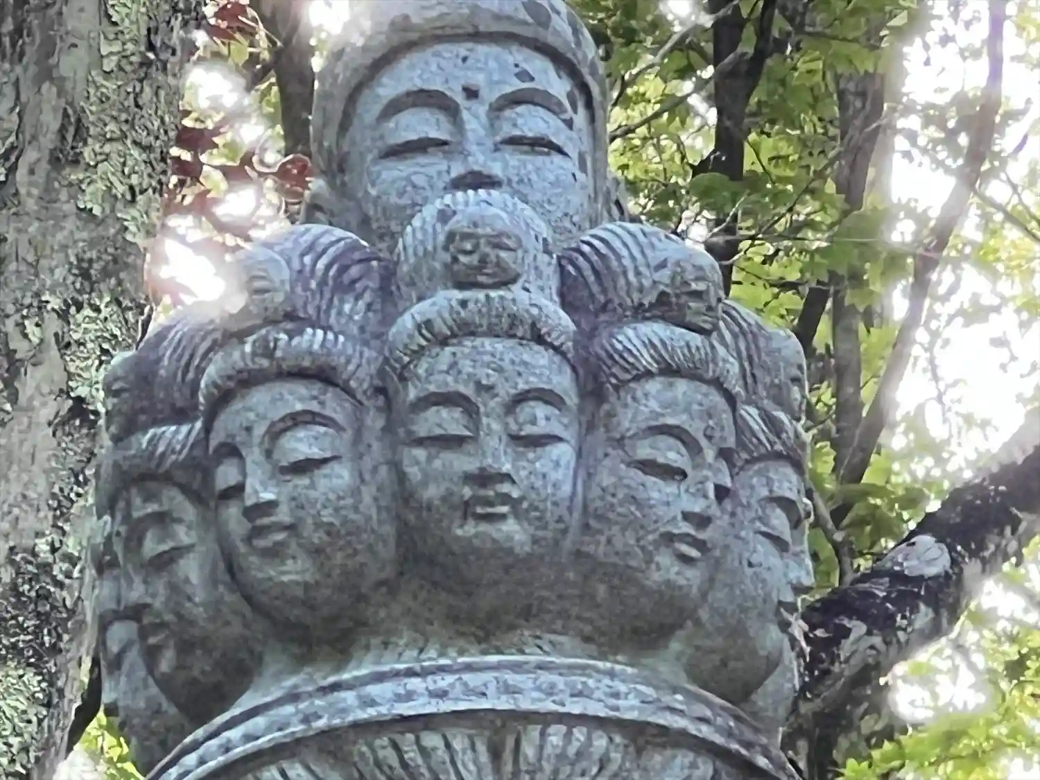 十一面観音像の頭の顔もよく見えた。真後ろにめちゃくちゃ白目剥いてる顔が一つあります。鼻垂らしてるのもいました。