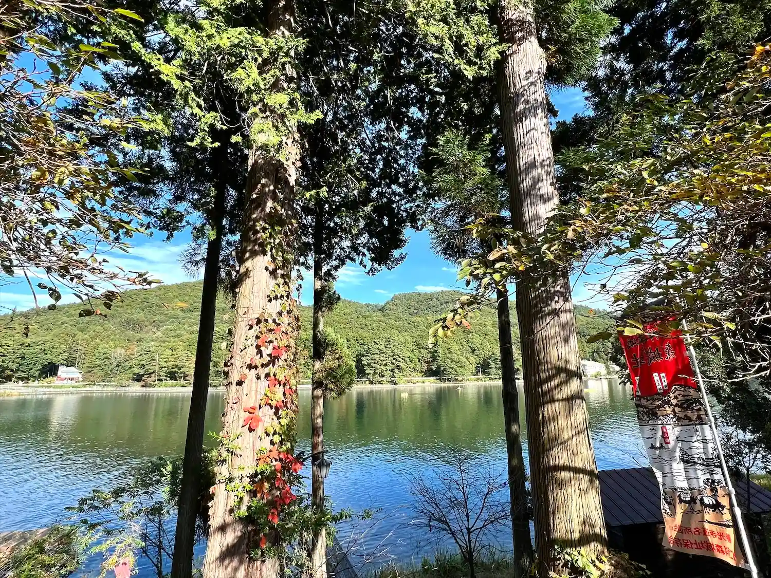 神社すぐ隣には木崎湖があり