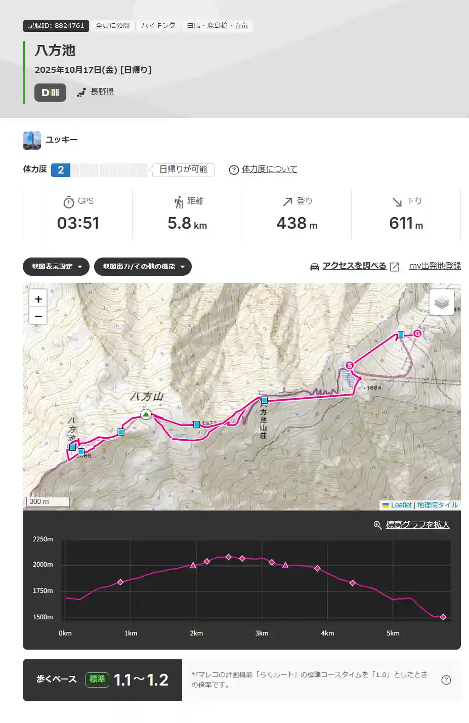 ヤマレコの山行記録