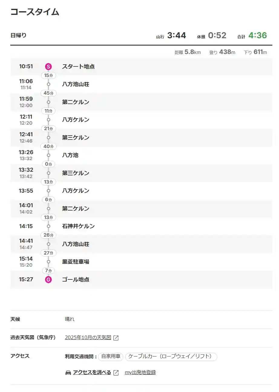 ヤマレコの予定ルート(適当に作成)が尾瀬の往復になっていたため