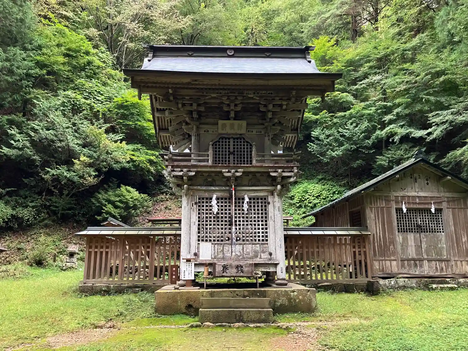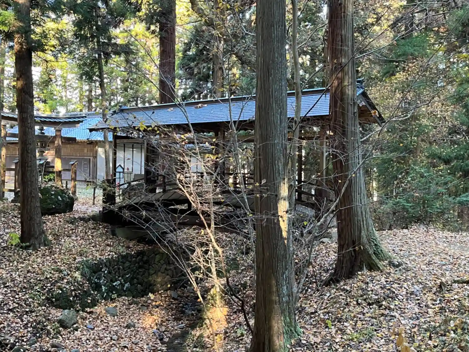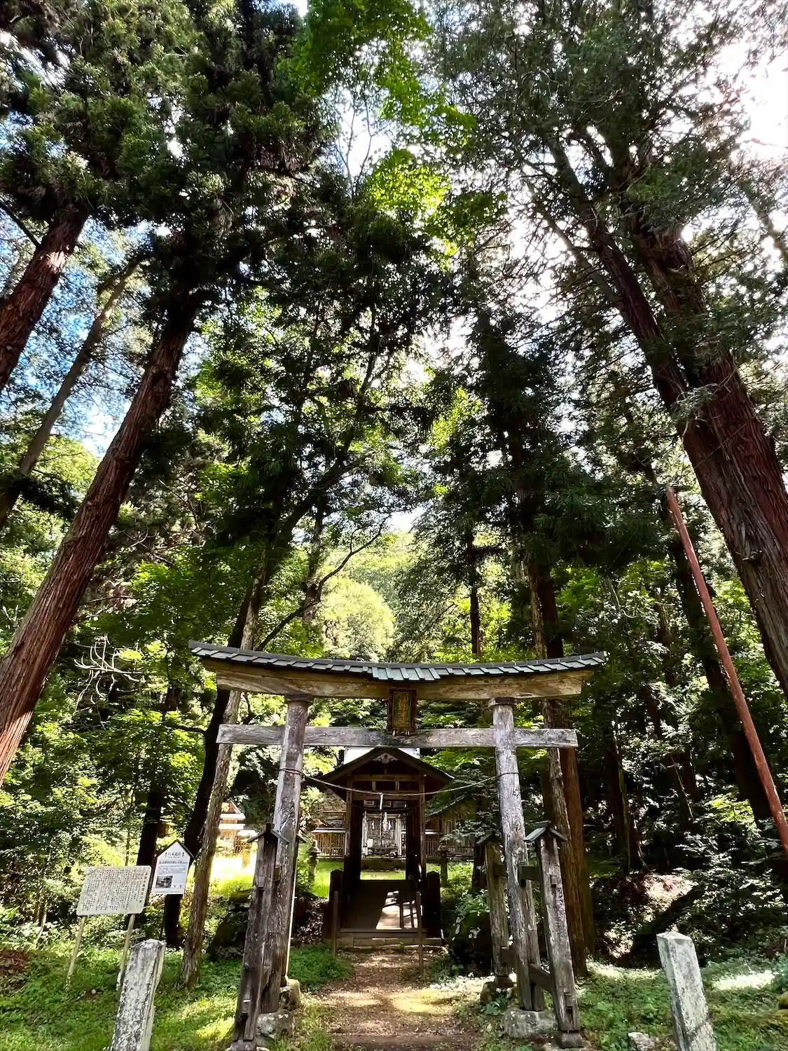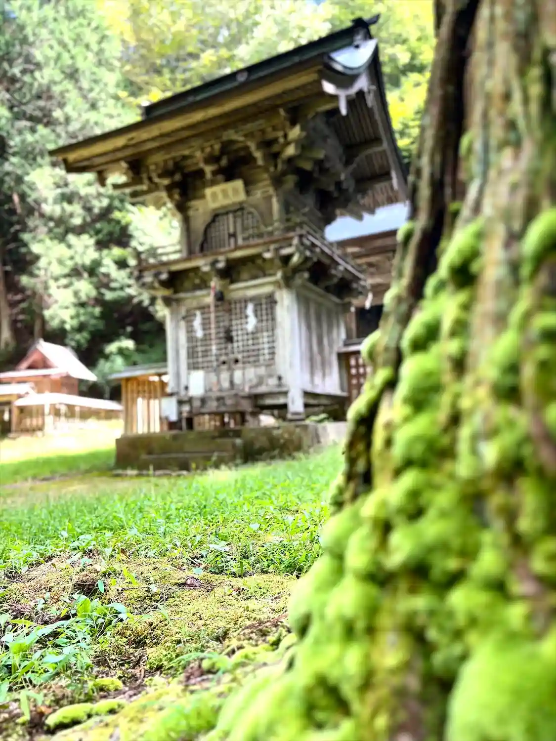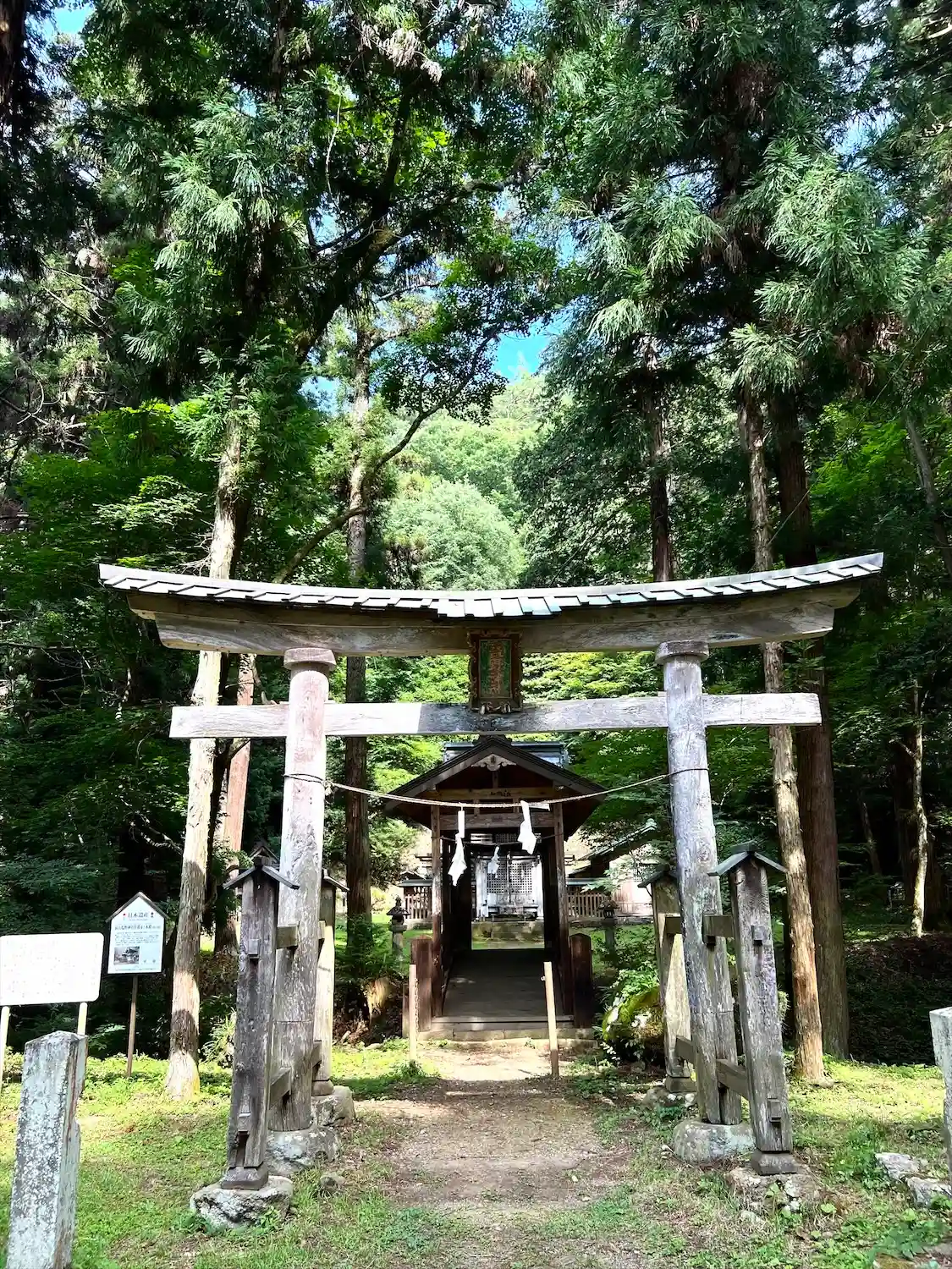 こちらの神社は、木材の古びた歴史感、森と清流と…
