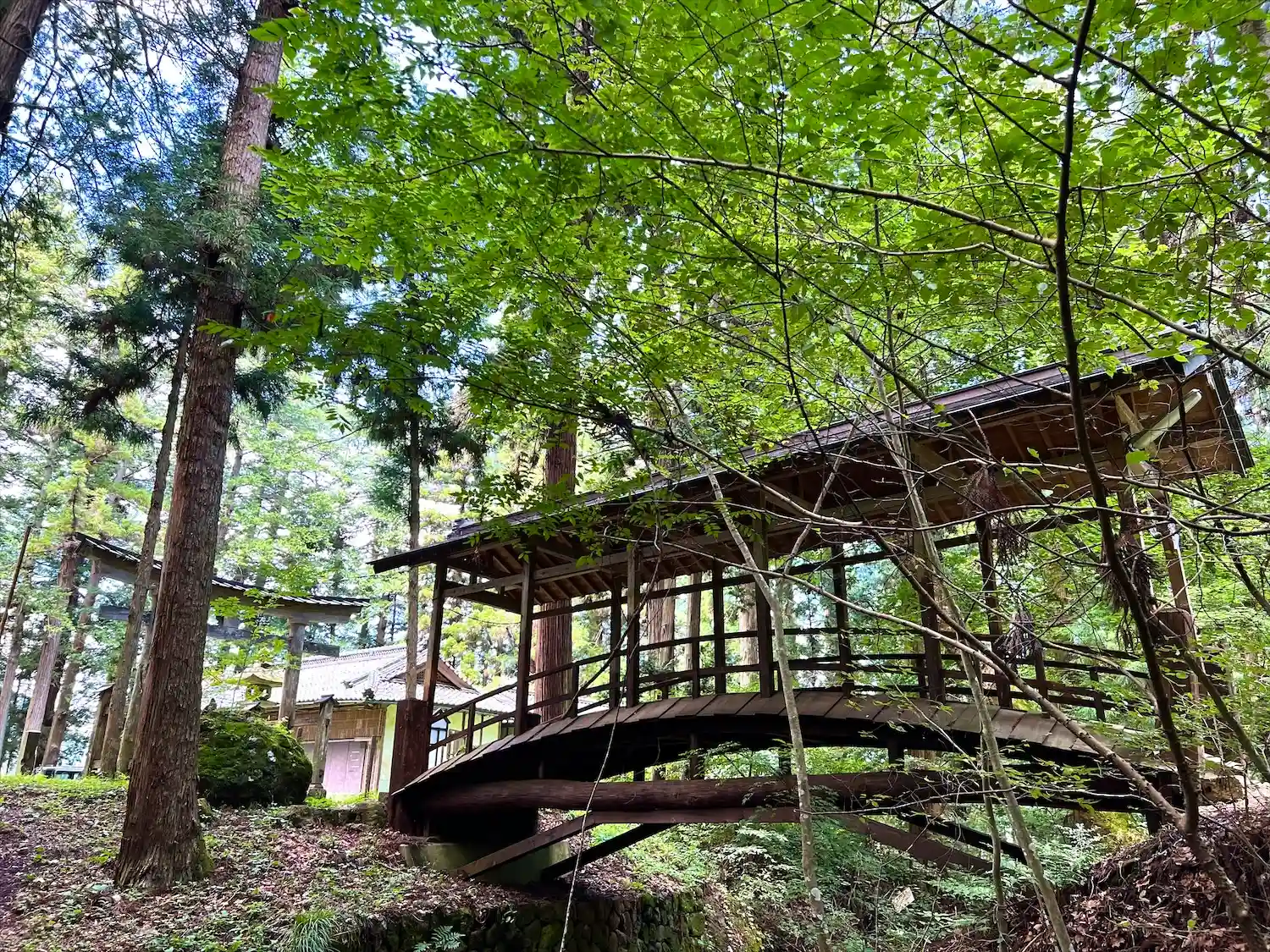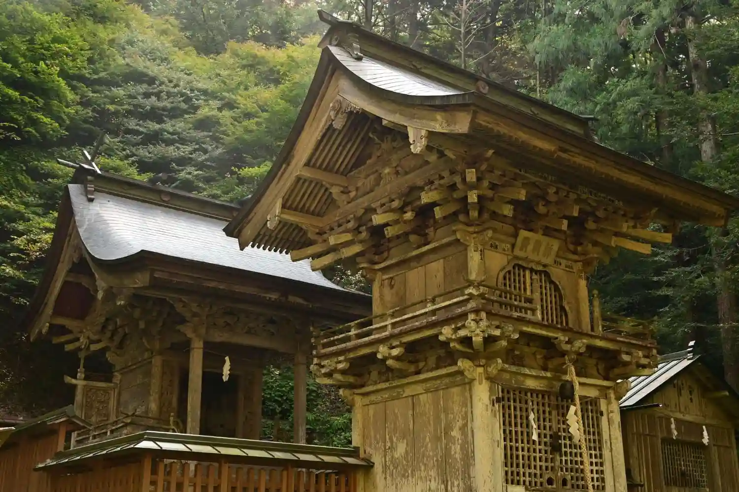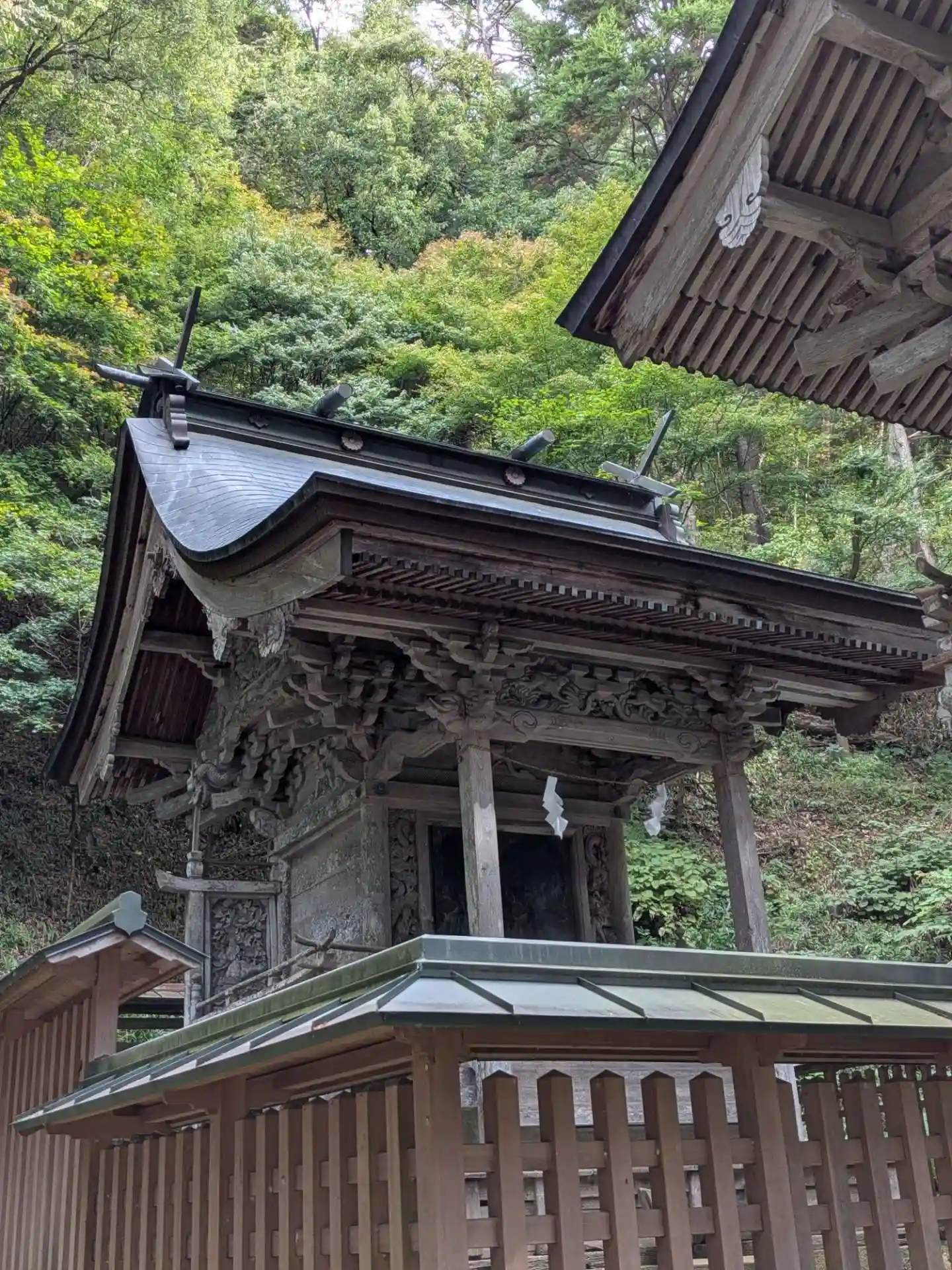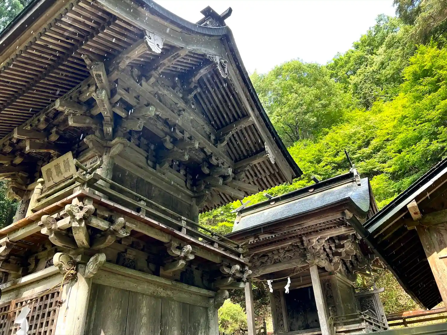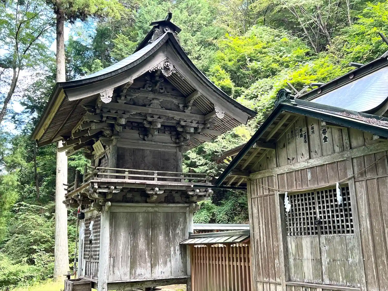 こちらの神社は、木材の古びた歴史感、森と清流と…