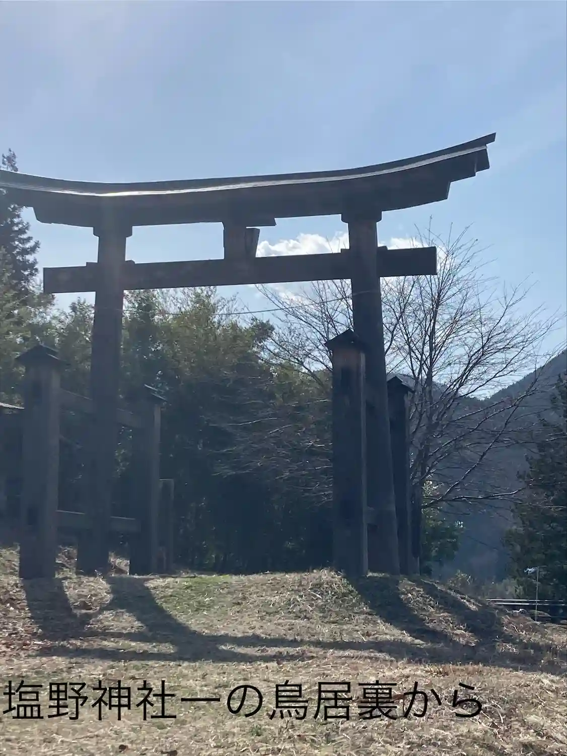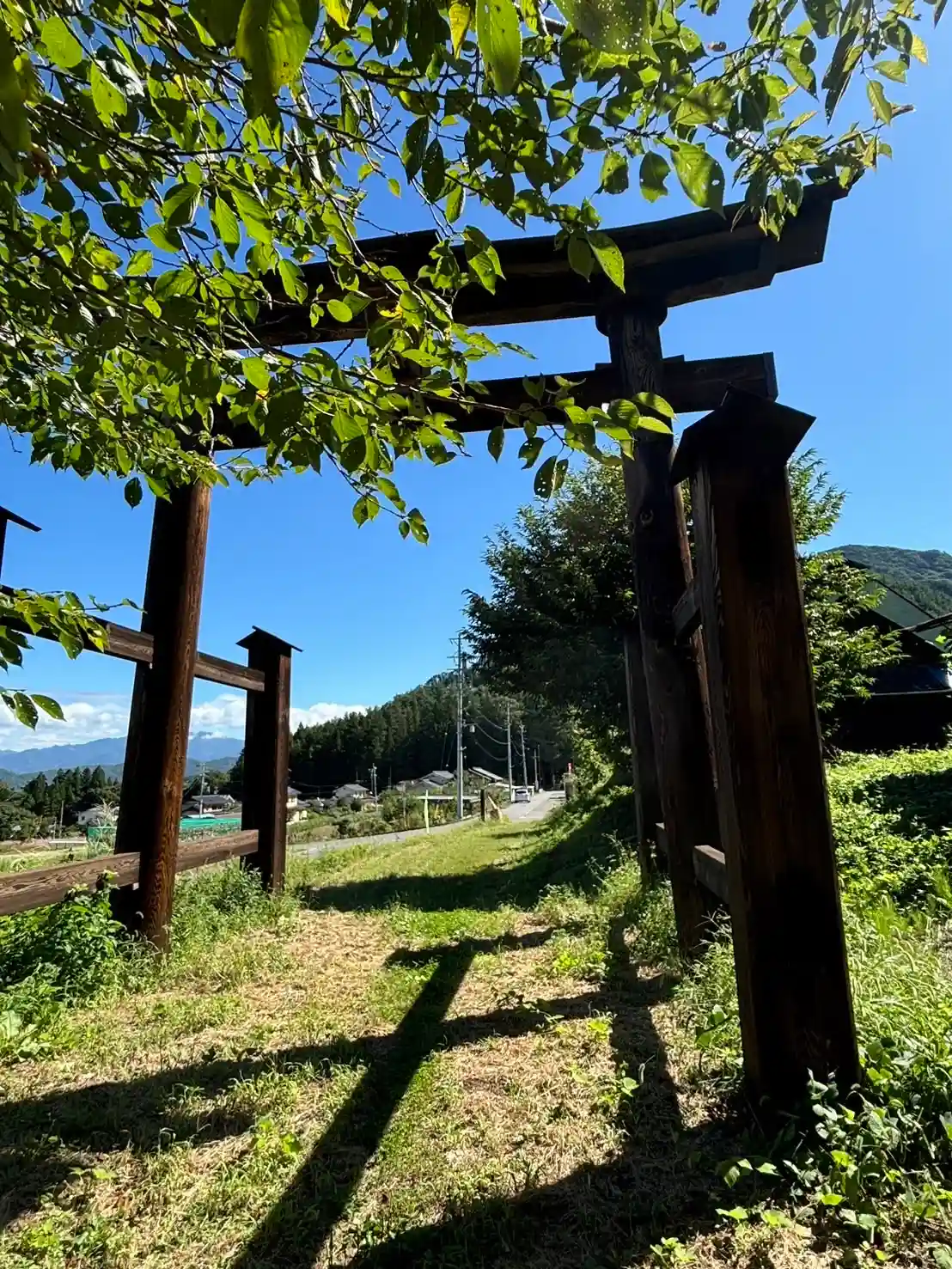 少し離れたところに鳥居があります。一の鳥居かな?塩田平が望めます😊