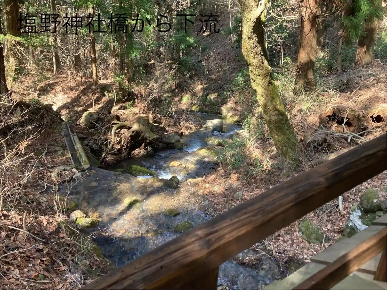 神橋。その下には独鈷山の清らかな湧き水が滝となって流れ、それがやがて本流の産川と合流して塩田平を潤しているそうです。