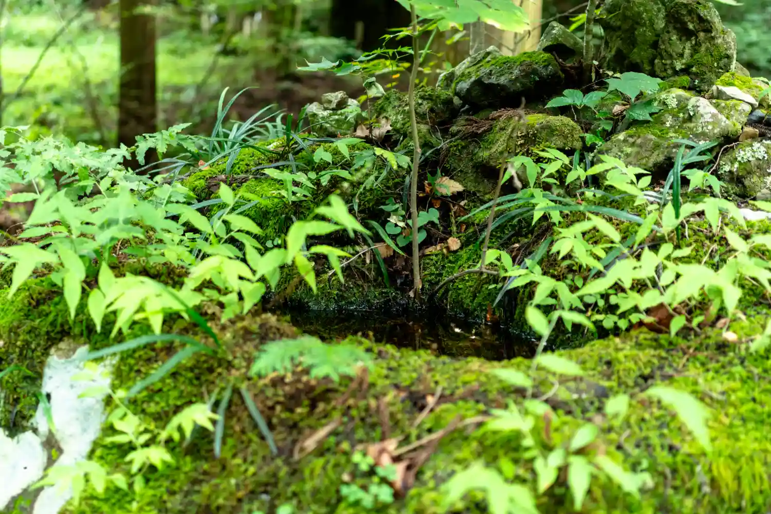 苔むしの手水岩