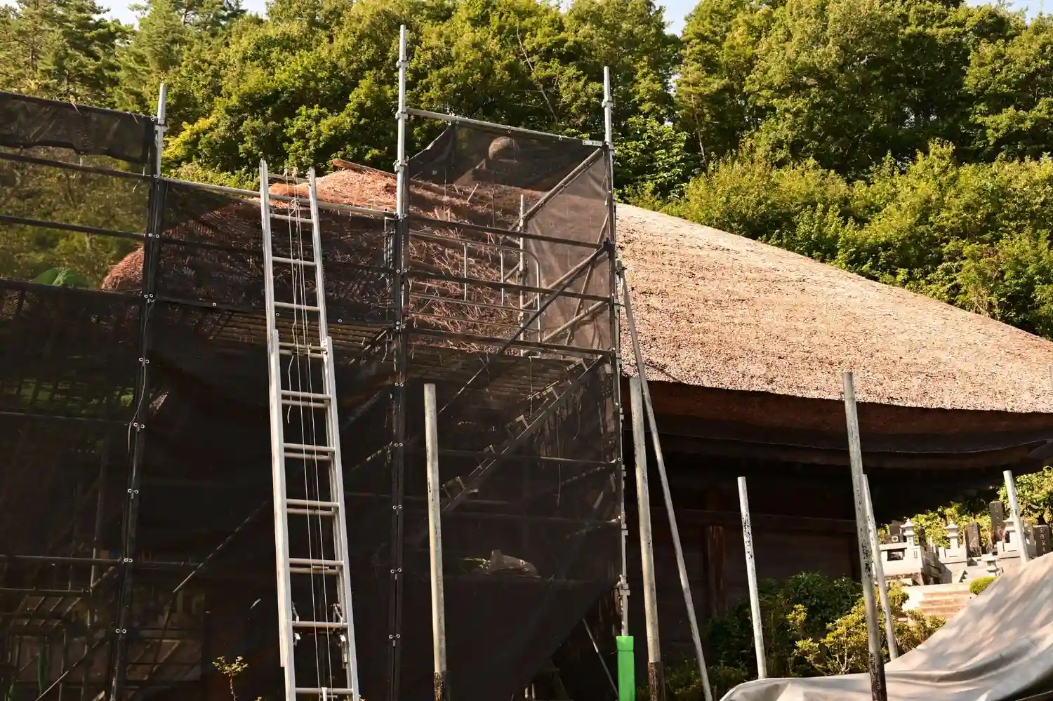 国の重要文化財。屋根葺き替え工事を行っていました。