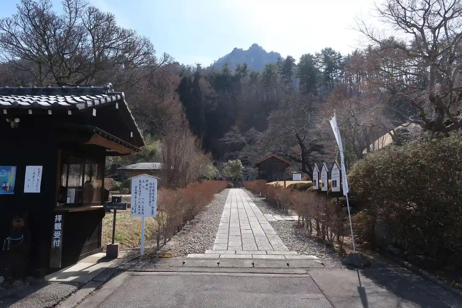 参道左側にあるのは拝観受付