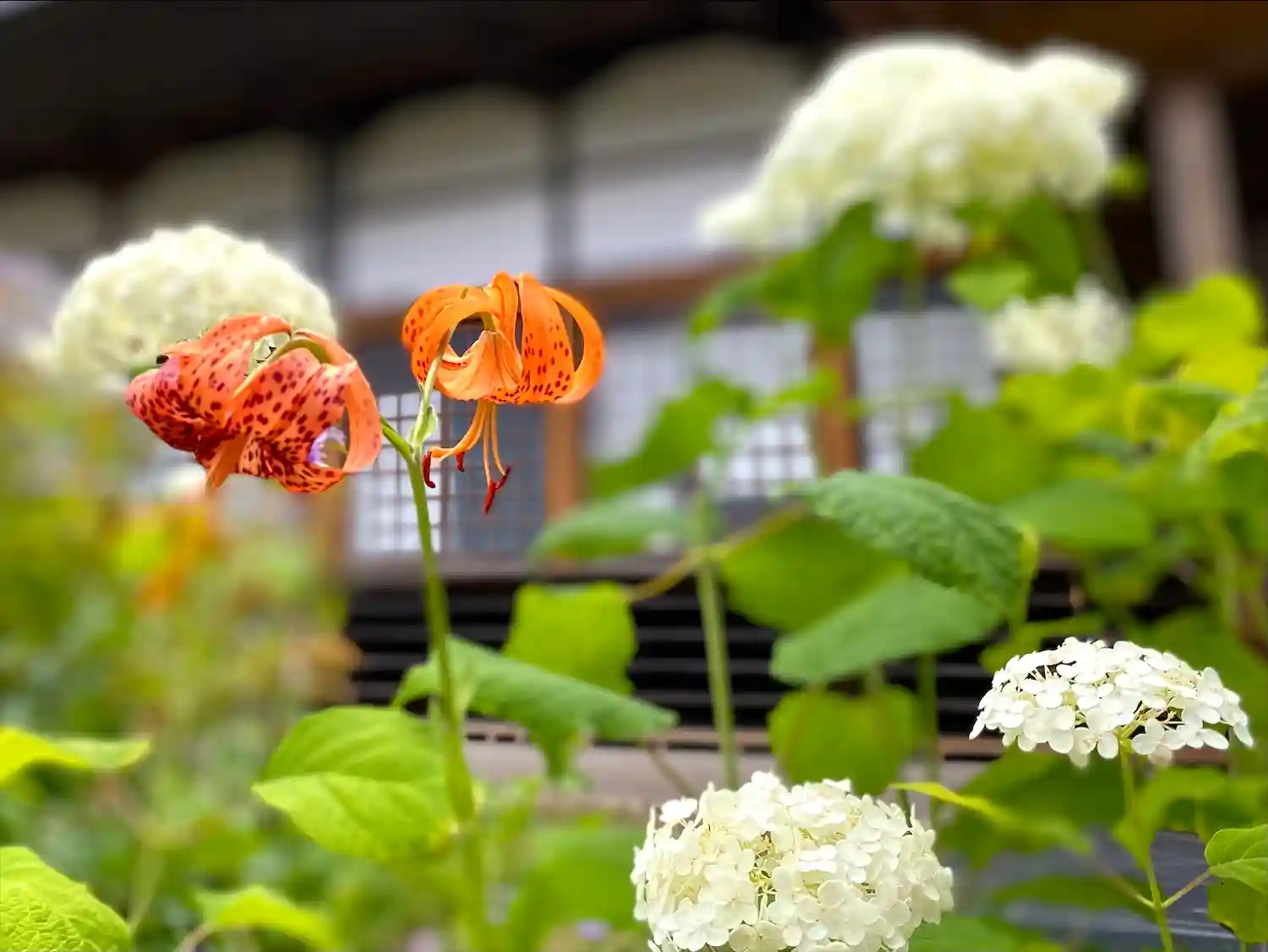 紫陽花に百合