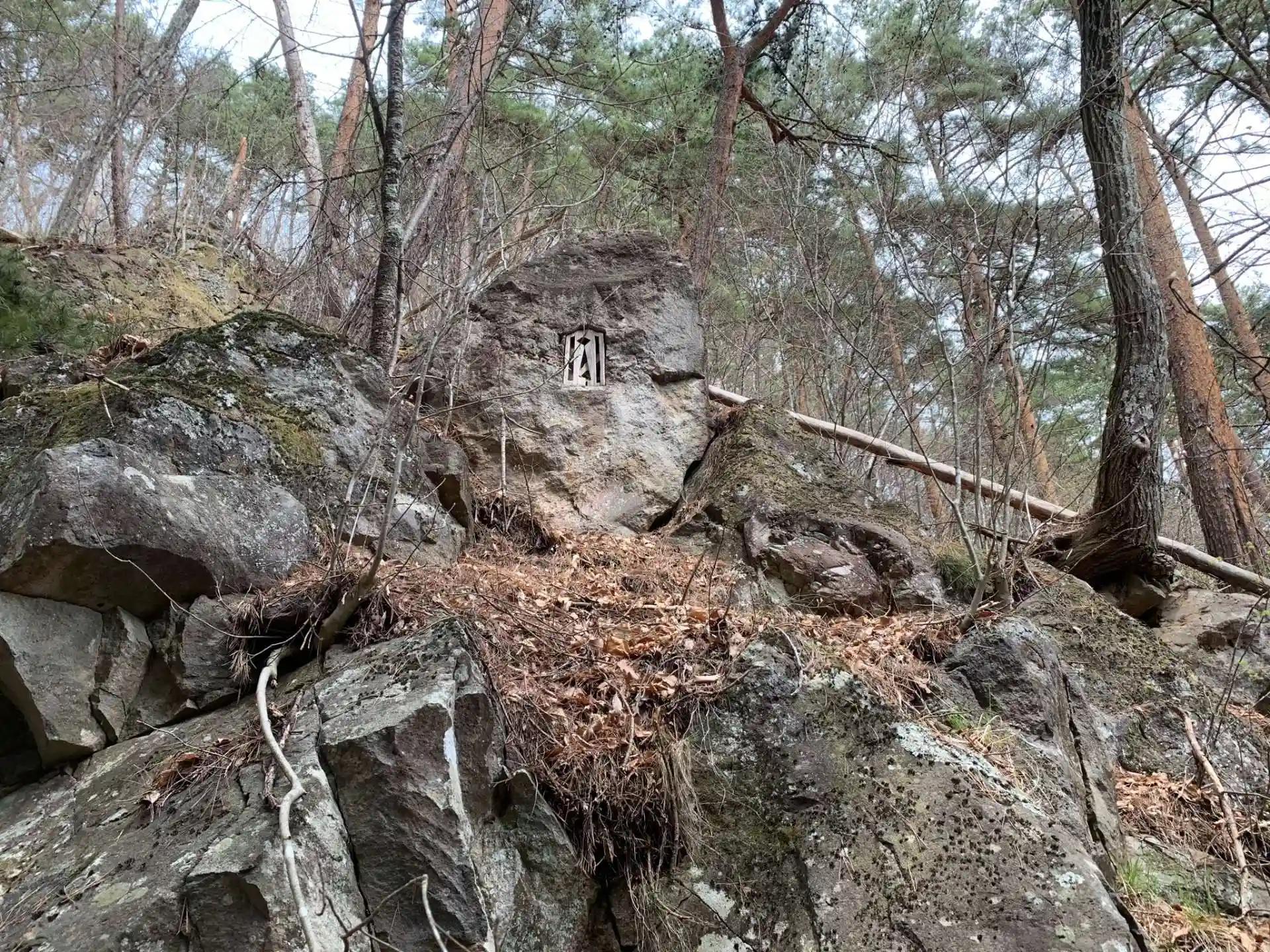 天白山の麓にある北赤井神社には拝殿しかなく、本殿はこちらの山の中にあります。北赤井神社から山道を15分ほど登る感じでしょうか。宮司さんによると、昔は祠もなく、天白山自体をご神体としてお祀りしていたのではないか、とのことでした。確かに祠は割と新しい感じ。