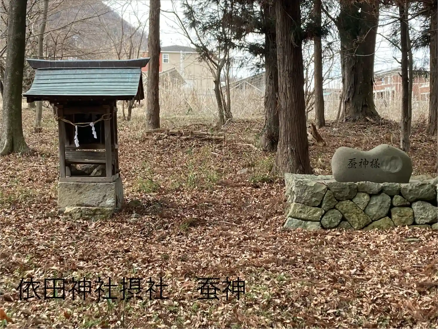 祭神は建御名方命(たてみなかたのみこと)と、八坂刀売命(やさかとめのみこと)。境内には阿夫利神社(雨水の神)、蚕神様、八幡様の祠が並んで祀られています。