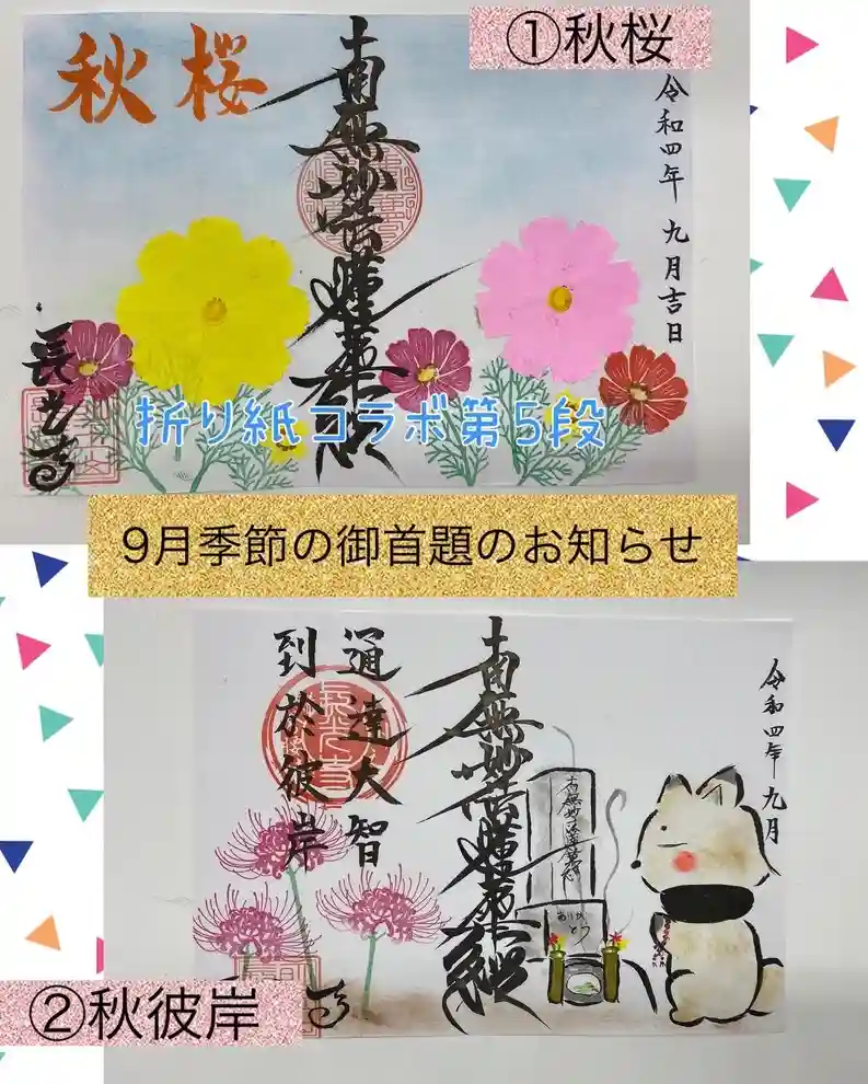 9月は「秋桜」と「秋彼岸」と題した御首題を作成しました。