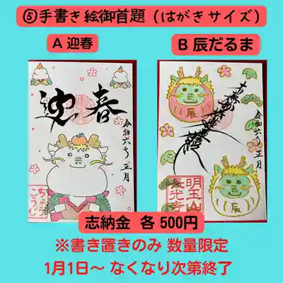 主なイラストは当山守護神兼マスコットキャラ「明玉霊神さま」です。