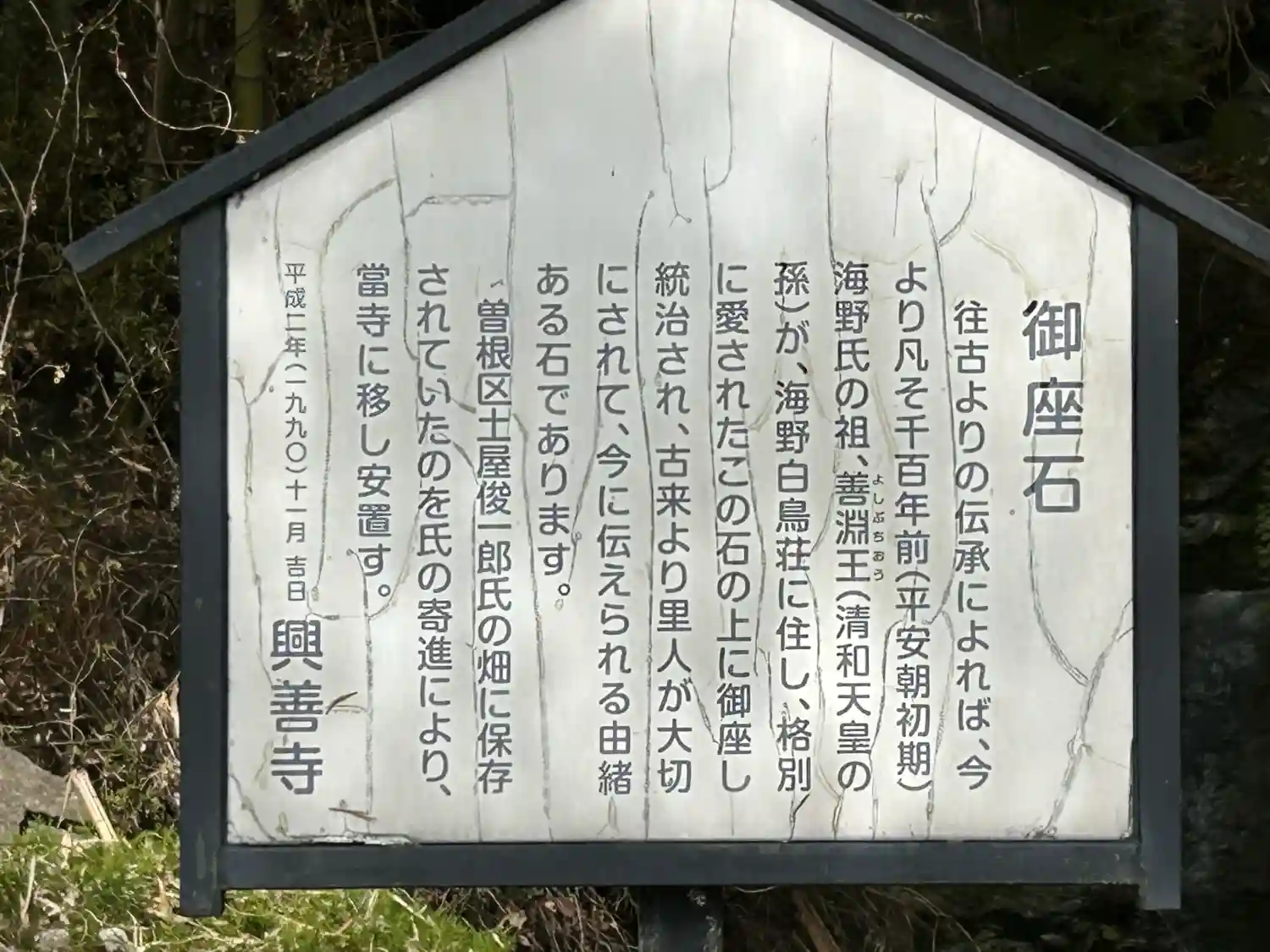 千百年前、清和天皇の孫が愛して御座して統治したとされる。