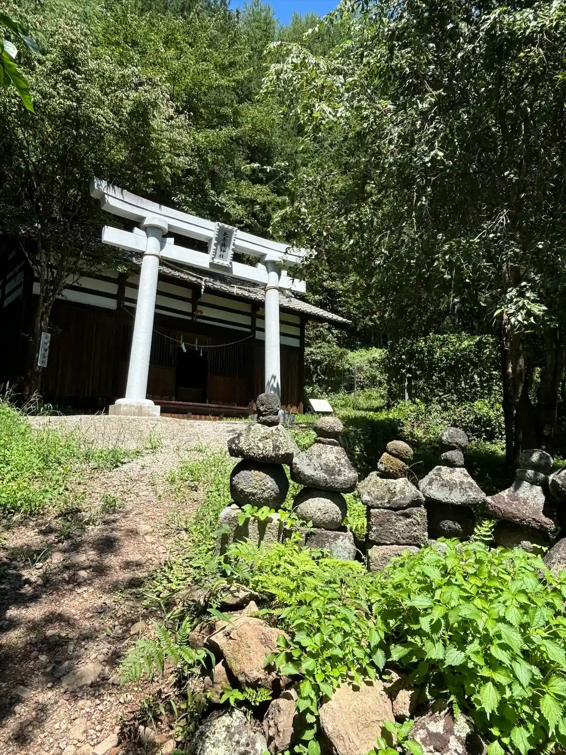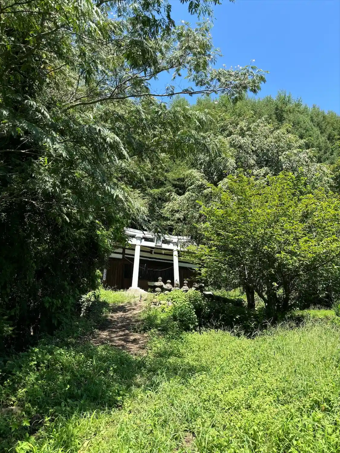 駐車場は離れた赤井の集会所です。いやぁ、探しましたよ。路駐できる道じゃないし、方向転換もできない。ぐるぐる回ってやっと見つけた駐車場から歩いて10分未満の天白城入り口から入ると民家に着いてしまいそう、、で、鳥居を見つけた時は宝物を見つけた気分です!