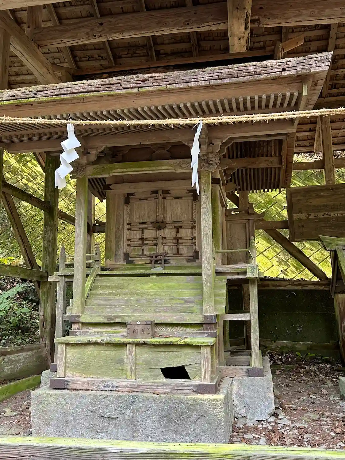 大きめの境内社の社の屋根が傷むほど古そうで狛犬の彫刻が素敵でした。