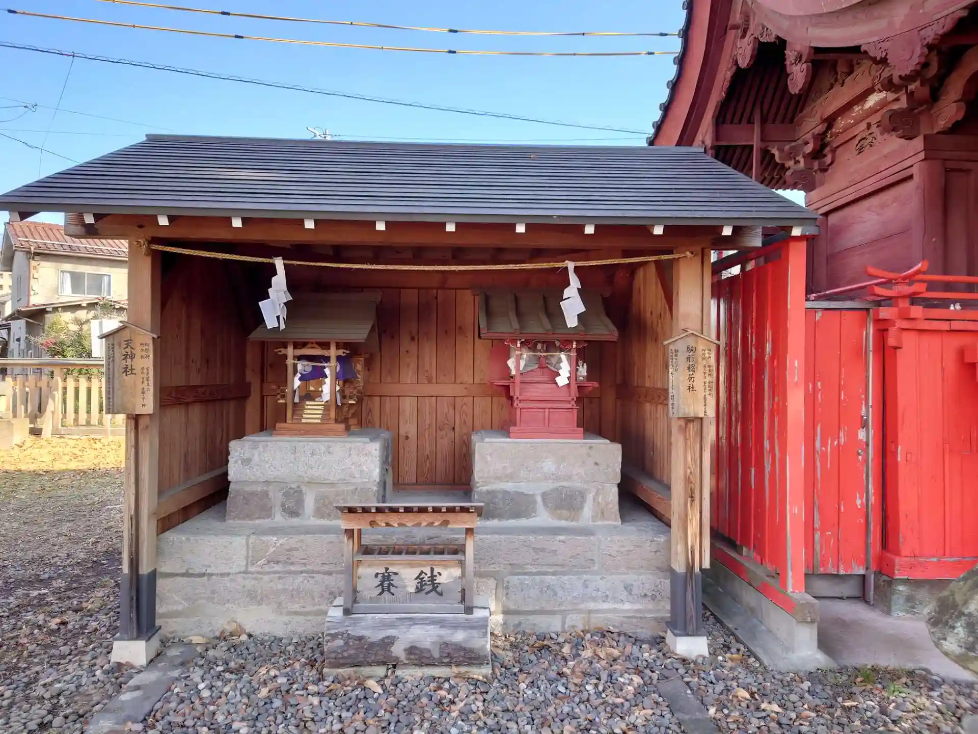 境内社 左、天神社・右、駒形稲荷社(天正年間(1573~1592)築城の際に上田旧城地より遷座されたと伝わる)